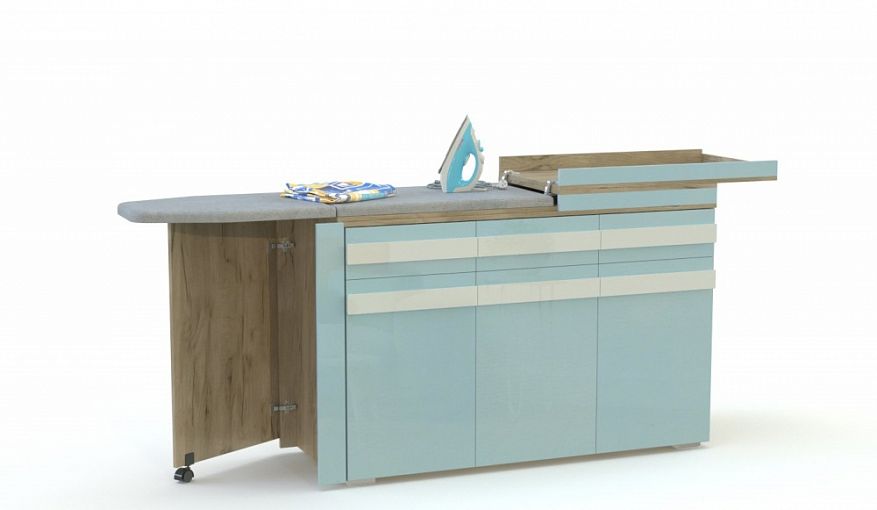 Комод Аниса-1 BMS украсит интерьер спальни или гостиной и обеспечит значительную экономию пространства. Разместить большое количество вещей помогут три выдвижных ящика и распашные отделения с полками, а для трансформации в гладильную доску предусмотрены скрытая под откидной столешницей рабочая поверхность и складная секция на выкатной опоре. Корпус в крафтовых древесных тонах дополняет светлый глянцевый фасад с декоративными накладными ручками. Купить комод Аниса-1 BMS приглашаем в наш интернет-магазин с выбором цвета по каталогу.