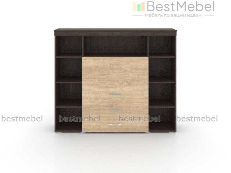 Комод-бар Марино M11 BMS выполнен в классических древесных тонах и отличается солидным, но в то же время актуальным дизайном. Крупногабаритная конструкция гармонично дополнит интерьер современной гостиной и разместит мини-бар, книги, декоративные предметы и разнообразные бытовые мелочи. Модель представляет собой сочетание трех выдвижных ящиков, откидного отделения и расположенных по периметру открытых полок. Купить комод-бар Марино M11 BMS по доступной цене вы сможете в нашем интернет-магазине.