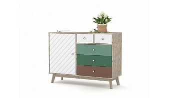 Комод Эстетик 16 BMS станет универсальным выбором для гостиной, спальни или прихожей. Широкая модель на высоких скошенных ножках эффектно сочетает в оформлении древесные оттенки и нейтральные цвета. Для удобного хранения разнообразных бытовых вещей комод оборудован тремя большими и двумя малыми выдвижными ящиками, распашным отделением с полками и просторной столешницей. Купить комод Эстетик 16 BMS с учетом необходимых размеров приглашаем в наш интернет-магазин.