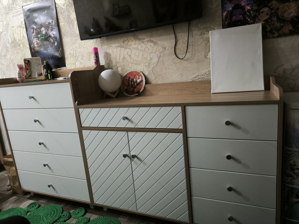 По опыту с компьютерным столом знал, что сборку надо начинать с получения цветной схемы, т.к. с приложенным чертежом ничего не получится. Отдельная история - это доставка, где экспедитор не знает количество упаковок, однако все прошло гладко.В итоге я разложил все детали по двум отдельным кучкам, соответствующие каждому комоду. Выяснилось, что даже на цветной схеме не указано 3 позиций, пришлось обращаться в гарантийный отдел. Собрал довольно быстро, благо есть опыт сборки мебели. В целом комоды понравились, есть конечно некоторые недочёты. Кстати, для ножек (которых 9) нет подпятников, чтобы не царапать пол