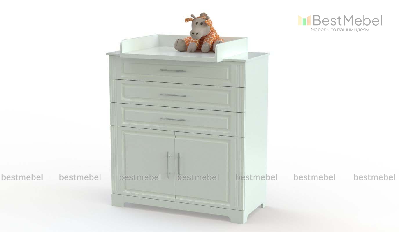 Комод пеленальный Инна 6 BMS – это классическая модель с рамочной фрезеровкой на фасаде и фигурными вырезами опор. Для удобного ухода за малышом комод оборудован съемным пеленальным столиком с безопасно скругленными бортиками. В трех просторных выдвижных ящиках и двухдверном распашном отделении будут всегда под рукой гигиенические принадлежности и одежда, игрушки и постельное белье. Купить комод пеленальный Инна 6 BMS вы сможете в нашем интернет-магазине, подобрав цвет и фурнитуру по каталогу.