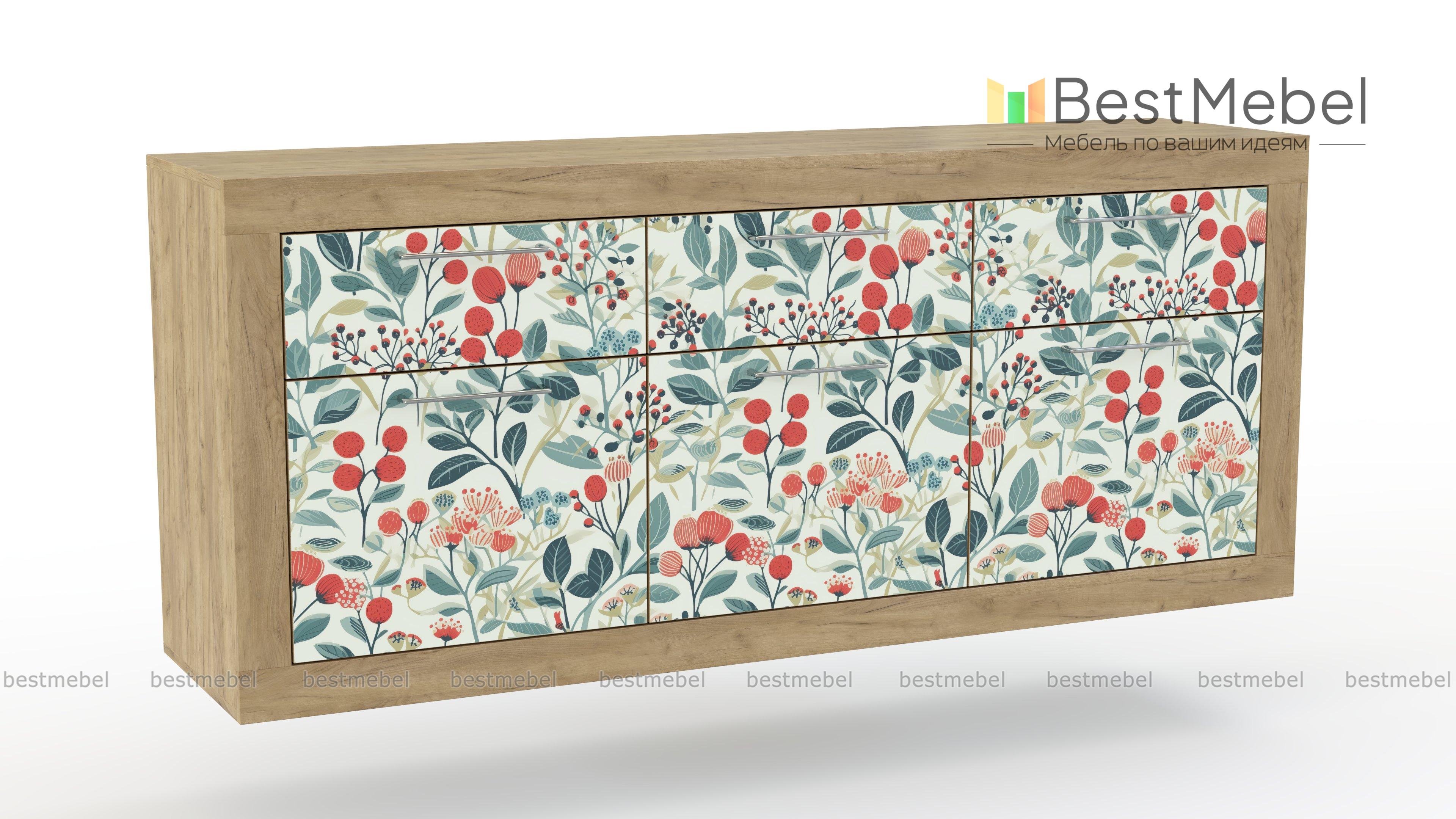 Комод Плеяда 15 BMS привлекает необычным сочетанием имитации бетона с изящным растительным принтом. Подвесная модель с широкими накладками на фасаде оживит и облегчит интерьер, добавив комнате уюта. Три ящика и распашные секции сделают удобным хранение мелочей и более габаритных вещей, а декоративные предметы разместятся на просторной столешнице. Купить комод Плеяда 15 BMS вы сможете в нашем интернет-магазине, подобрав фурнитуру и цвет по каталогу.