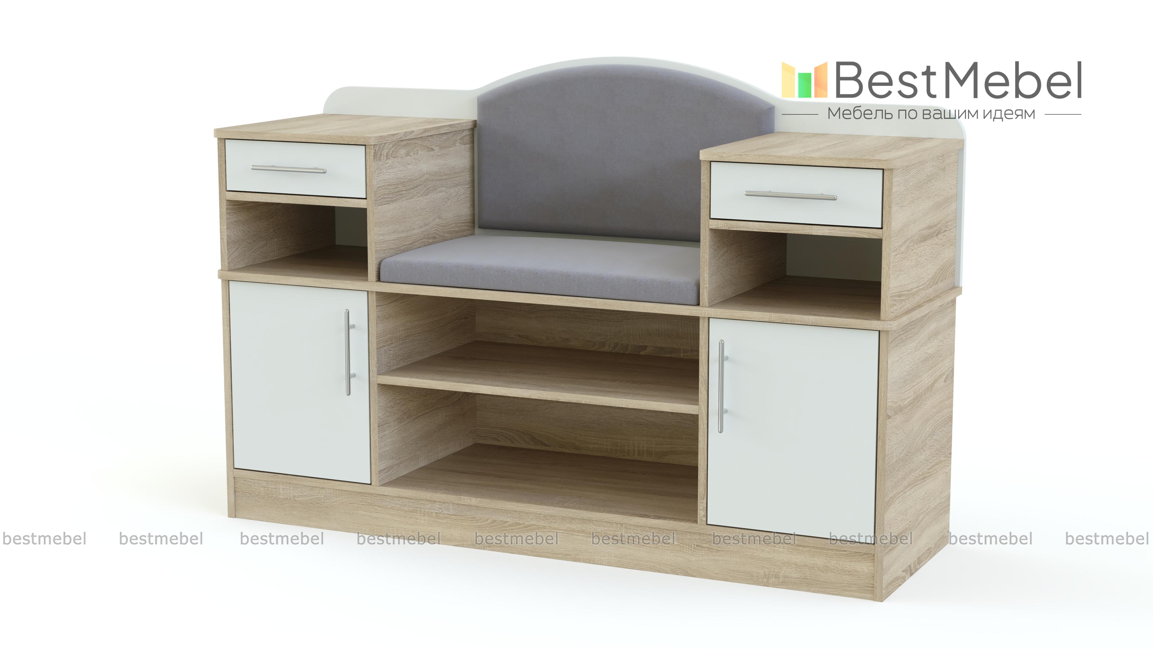 Обувница Дана BMS объединила продуманную систему хранения и комфортное сиденье. Многофункциональная модель оборудована открытыми обувными полками, распашными отделениями, выдвижными ящиками и нишами для хранения аксессуаров и мелочей. Спинка сиденья с мягкой обивкой в ткани элегантно скруглена. Выполненная в серо-бежевой гамме, обувница гармонично дополнит современные прихожие. Купить обувницу Дана BMS и эффективно использовать пространство вам поможет наш интернет-магазин.