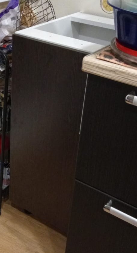 Сделали не по размеру, но быстро переделали. Встал как и планировался, цвет немного отличается, но не критично (остальная мебель непонятно где заказывалась). Сверху накроем столешнеицей, и все будет хорошо. Собирается быстро, все понятно.