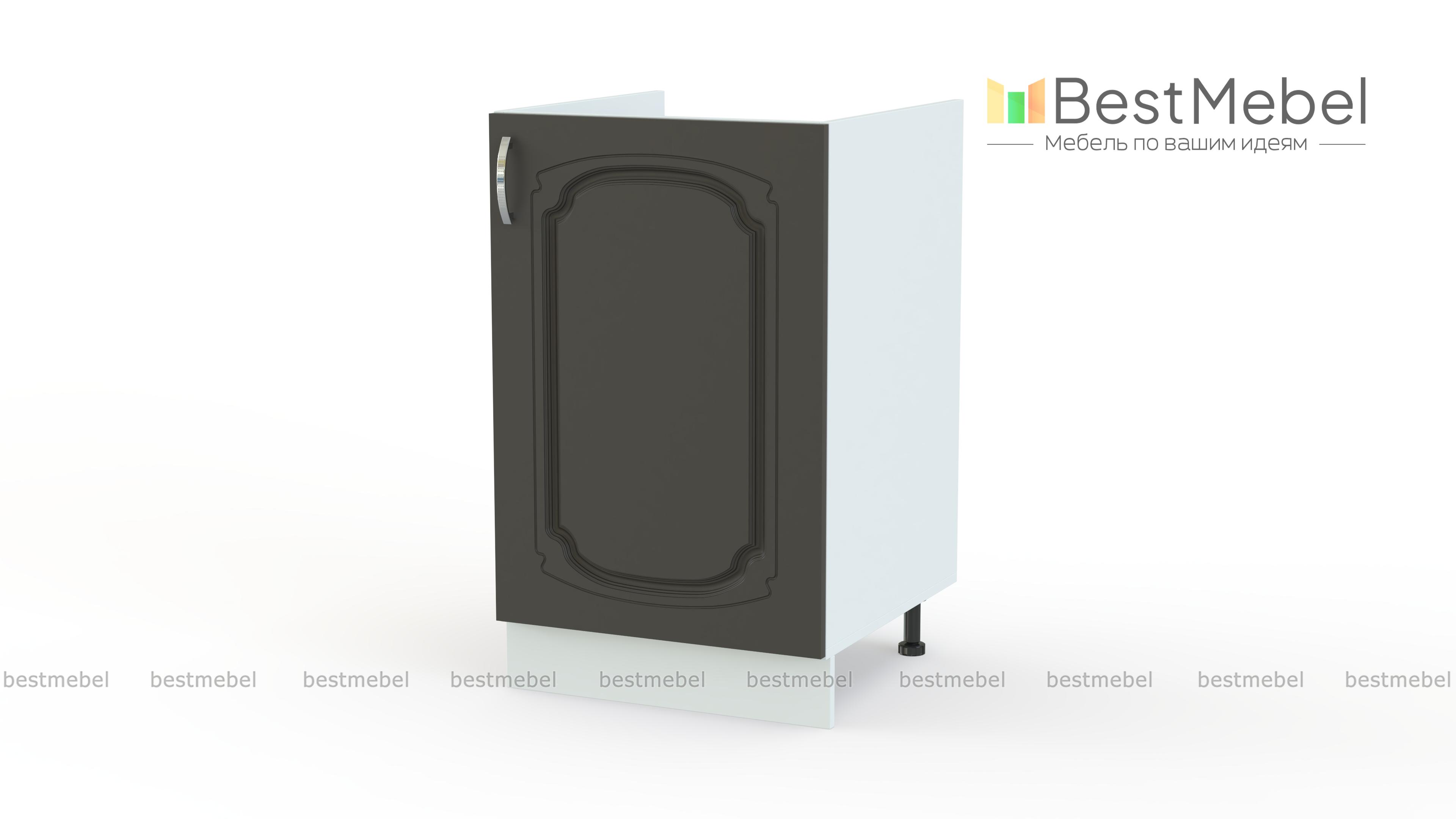 Шкаф нижний под мойку с 1-ой дверцей Настя BMS – необходимый элемент кухонного гарнитура. Классическая модель оборудована распашной дверцей и просторным внутренним отделением, сплошная задняя стенка отсутствует. Удобный в малогабаритных помещениях, небольшой шкаф разместит мойку, мусорный контейнер и скроет коммуникации, сделав интерьер эстетичным. Устойчивость конструкции обеспечивают регулируемые опоры, закрытые цоколем. Купить шкаф нижний под мойку с 1-ой дверцей Настя BMS с изящным фрезерованным рисунком приглашаем в наш интернет-магазин.