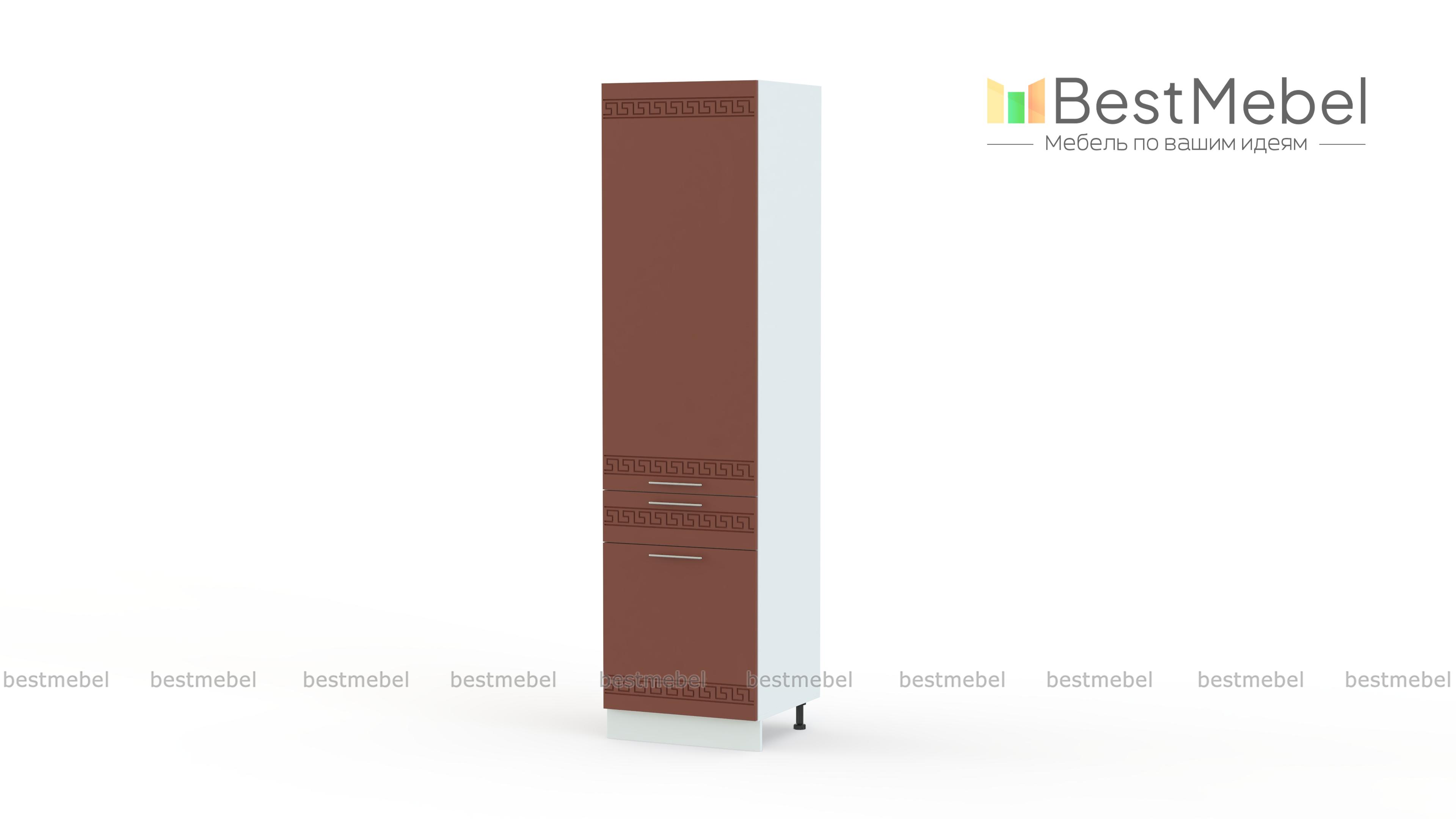Шкаф-пенал 1 ящик Греция BMS отличается компактными размерами и вместительностью за счет высоты. Шкаф может использоваться как часть комплекта и самостоятельно в меблировке кухни. Помимо распашных отделений с полками под продукты и посуду, пенал оборудован выдвижным ящиком, удобным для хранения мелочей. Светлые фасады с этническим орнаментом и изящными ручками станут украшением домашнего интерьера. Купить шкаф-пенал 1 ящик Греция BMS по лучшей цене приглашаем в наш интернет-магазин.