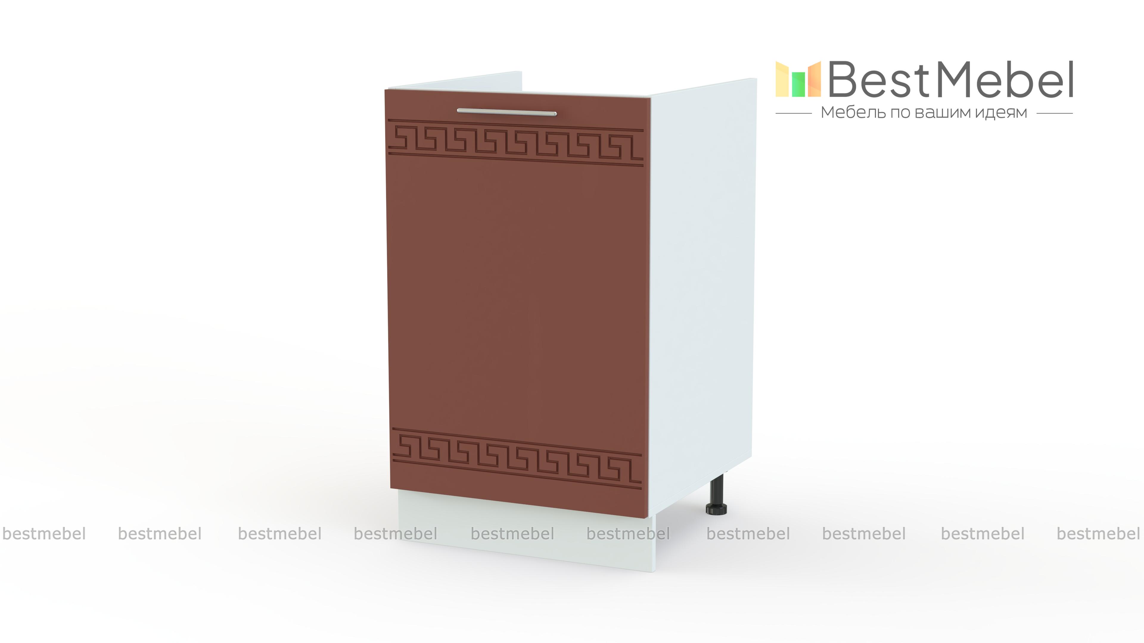 Тумба под мойку Греция BMS отличается компактными размерами и будет прекрасным выбором для меблировки малогабаритных помещений. Однодверная распашная модель предназначена для размещения мойки, емкости под мусор или бытовой химии. Отсутствие глухой задней стенки поможет скрыть водопроводные трубы и сделать интерьер более эстетичным. Светлый фасад с матовым эффектом декорирован орнаментом в этностиле. Купить тумбу под мойку Греция BMS по доступной цене приглашаем в наш интернет-магазин.