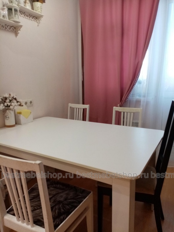 Заказала стол кантри 00000602731, долго искала хотелось большой стол белого цвета, а попадались стандартных размеров. В конструкторе выбрала размер, попросила края закруглить, и не жалею, стол смотрится нежнее, поверхность очень хорошая, стол стоит устойчиво, крепкие ножки. Он большой, но не грамоздко смотрится.