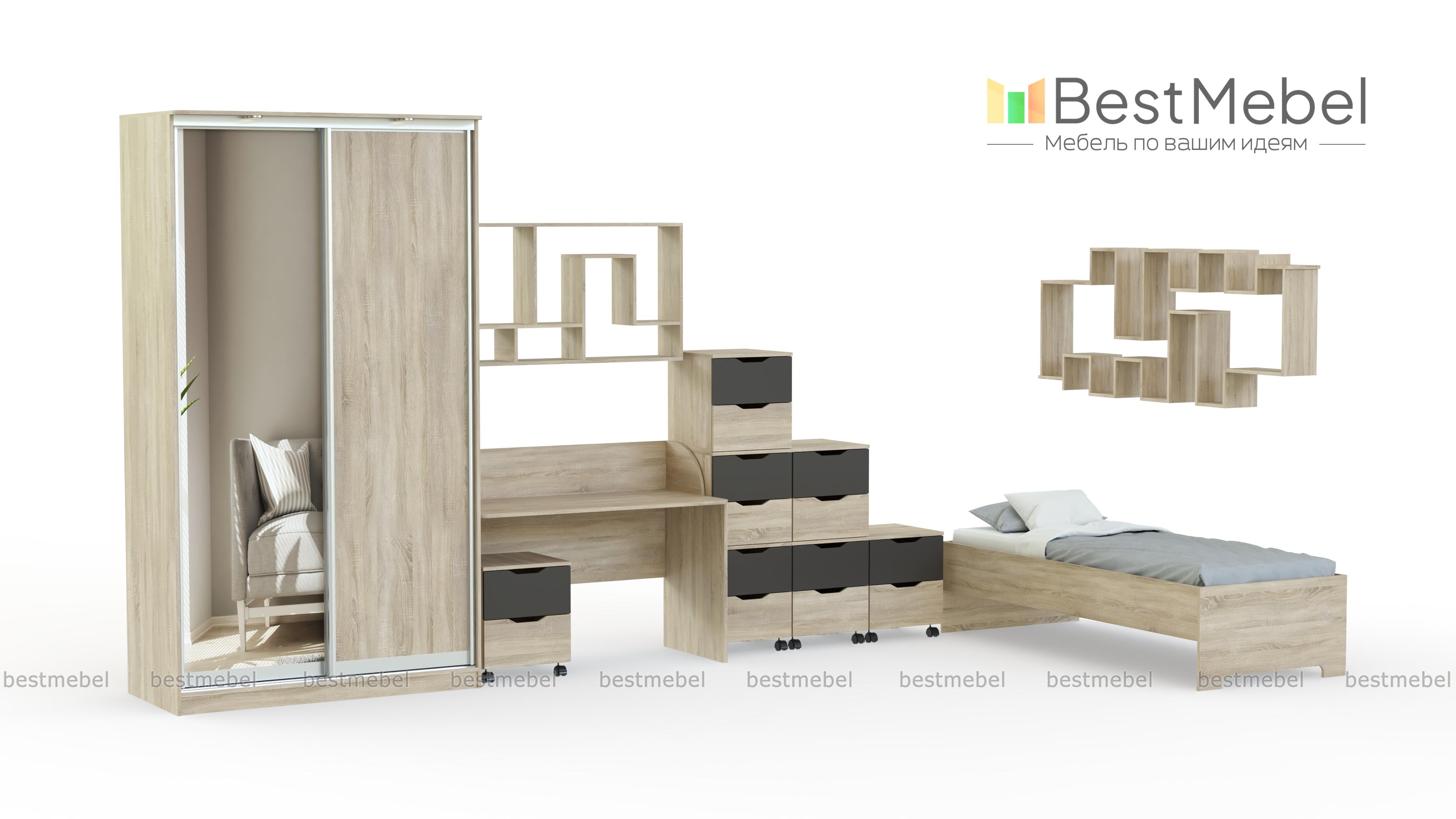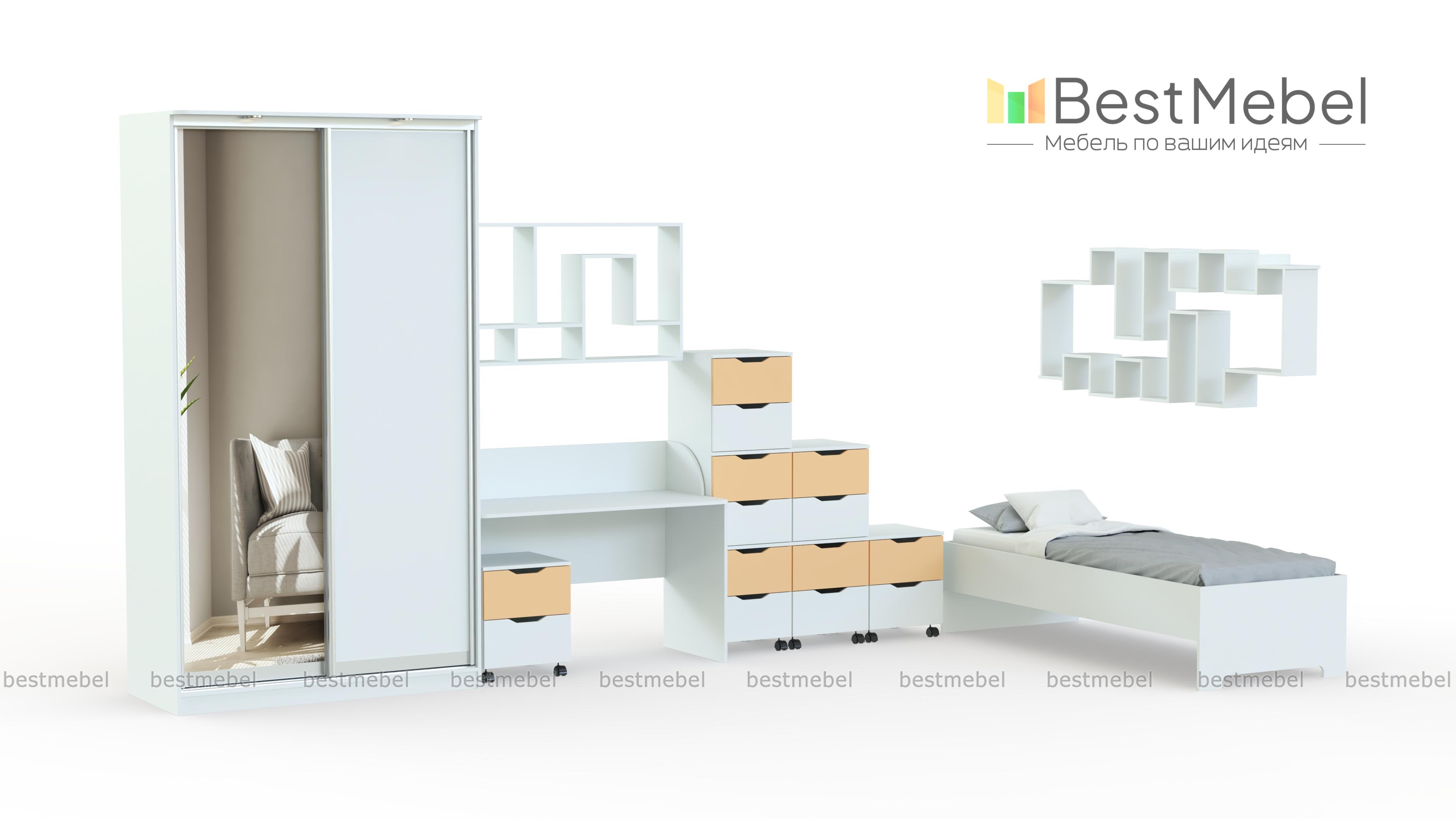 Детская мебель Автобус BMS понравится детям ярким дизайном, а взрослые оценят функциональность и надежность конструкции. Модель в светлых древесных тонах декорирована цветными вставками, ручки выдвижных ящиков – практичные выемки. Шкаф-купе с раздвижными дверцами позволит сэкономить пространство и легко разместит гардероб ребенка. Письменный стол дополняют тумба и стеллаж для канцелярских принадлежностей и книг, а полноценный сон подарит кровать-тахта. Купить детскую мебель Автобус BMS приглашаем в наш интернет-магазин.
