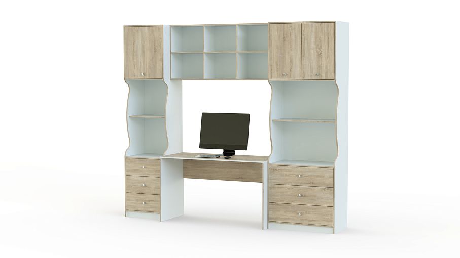 Детская модульная система Кирилл-2.3 BMS поможет обустроить комфортную рабочую зону в комнате мальчика или девочки. Отдельные элементы композиции вы сможете максимально гармонично вписать в меблировку и сэкономить пространство. Стеллаж и шкаф комбинированной конструкции объединены с письменным столом и навесной книжной полкой, позволяя разместить под рукой все необходимое и не отвлекаться во время учебного процесса. Купить детскую модульную система Кирилл-2.3 BMS приглашаем в наш интернет-магазин.