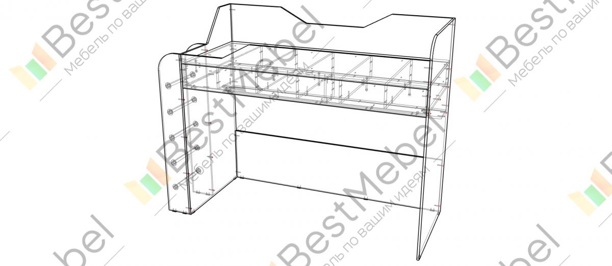 Кровать-чердак детская Ева КР-203 BMS поможет рационально организовать пространство современной детской комнаты. Полноценный сон ребенку подарит комфортное спальное место второго яруса со скругленными защитными бортиками, к которому ведет устойчивая лестница. На первом же, оборудованном книжной полкой, вы сможете разместить письменный стол, дополнительную кровать или обустроить игровую зону. Купить кровать-чердак детскую Ева КР-203 BMS приглашаем в наш интернет-магазин с учетом необходимых параметров.