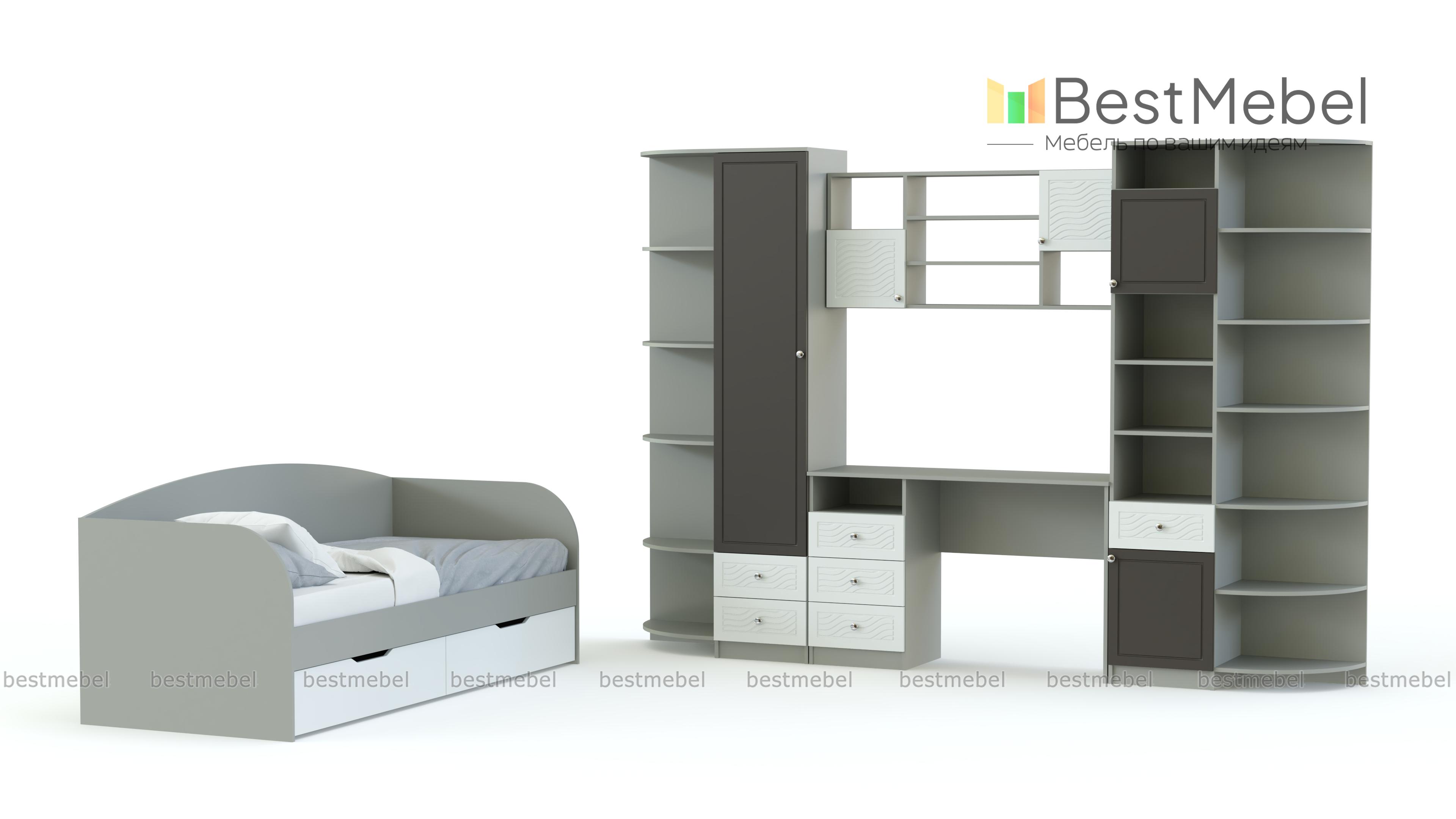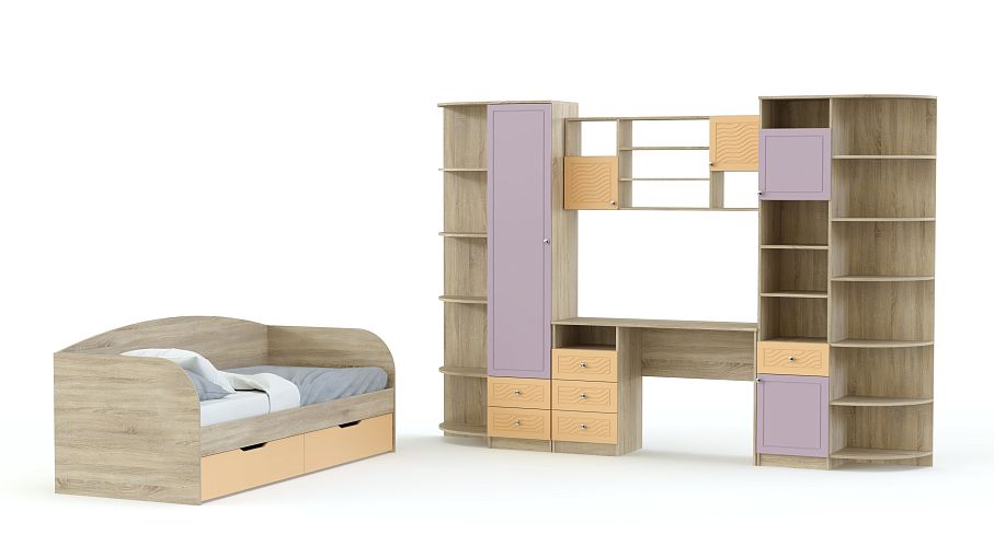 Модульная детская Акварель 3 BMS поможет обустроить светлую и визуально легкую комнату. Разнообразие входящих в комплект элементов обеспечит комфортный отдых и позволит разместить все необходимое – от предметов гардероба до школьных принадлежностей. Фасады, выполненные в сочетании нейтральных и ярких акварельных оттенков, создадут позитивную атмосферу и добавят домашнему интерьеру красок. Детская оборудована диваном-кроватью с бельевыми ящиками, компьютерным столом с надстройкой, комбинированными пеналами и угловыми стеллажами для книг и игрушек. Купить модульную детскую Акварель 3 BMS приглашаем недорого в наш интернет-магазин.