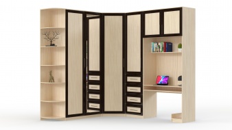 Шкаф со столом Комфорт-2 BMS станет практичным вариантом меблировки современной спальни, гостиной, молодежной комнаты. Угловая композиция поможет максимально эффективно использовать доступное пространство, объединив удобную систему хранения и рабочее место. В комплекте угловой и прямой шкафы для одежды, комбинированный шкаф с выдвижными ящиками, скругленный торцевой стеллаж и секция со столешницей, книжной полкой и антресолью. Классические рамочные фасады выполнены в древесных тонах, одна из створок – зеркальная. Купить шкаф со столом Комфорт-2 BMS приглашаем в наш интернет-магазин.