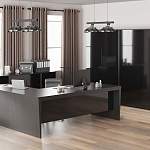 Кабинет руководителя Дуо 6 BMS выполнен в нестандартном сочетании корпуса с имитацией текстуры дерева и черных глянцевых фасадов. Модульный комплект состоит из рабочего стола с просторной прямоугольной столешницей, дополненного приставным элементом, греденций и распашных шкафов для одежды и документов. Минималистичный дизайн кабинета органично впишется в ультрасовременные офисные интерьеры. Купить кабинет руководителя Дуо 6 BMS вы сможете в нашем интернет-магазине по лучшей цене.