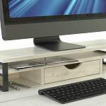 Подставка под монитор Сена-3 BMS отлично вписывается в лофты и интерьеры стиля индастриал. Брутальная модель в крафтовых древесных тонах располагается на металлических опорах из профиля контрастного цвета. Двойная столешница, вместительный выдвижной ящик и открытые боковые секции позволяют установить на удобной высоте монитор и хранить в быстром доступе канцелярские мелочи и бумаги. Купить подставку под монитор Сена-3 BMS и расширить функционал рабочего стола вам поможет наш интернет-магазин.