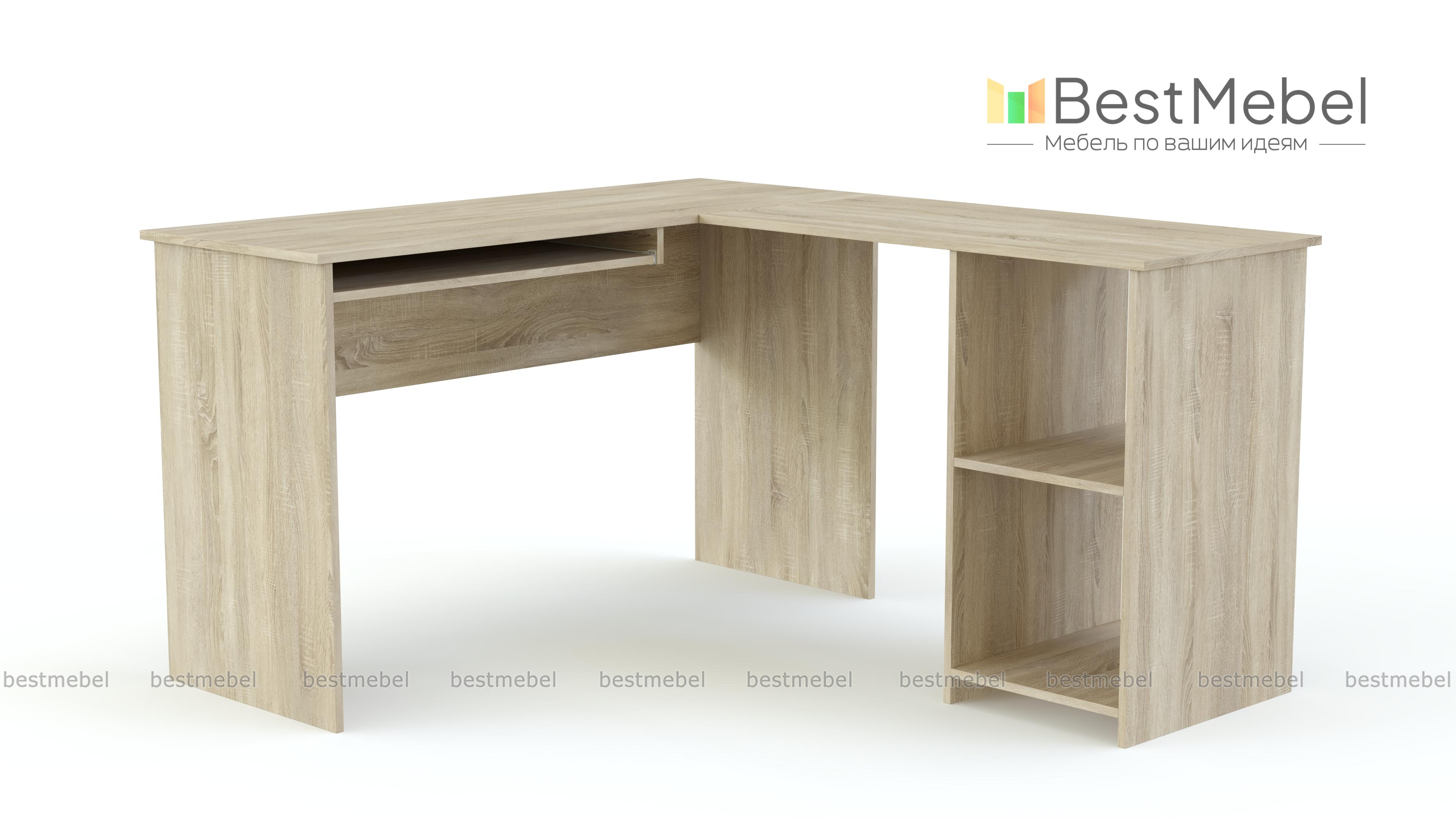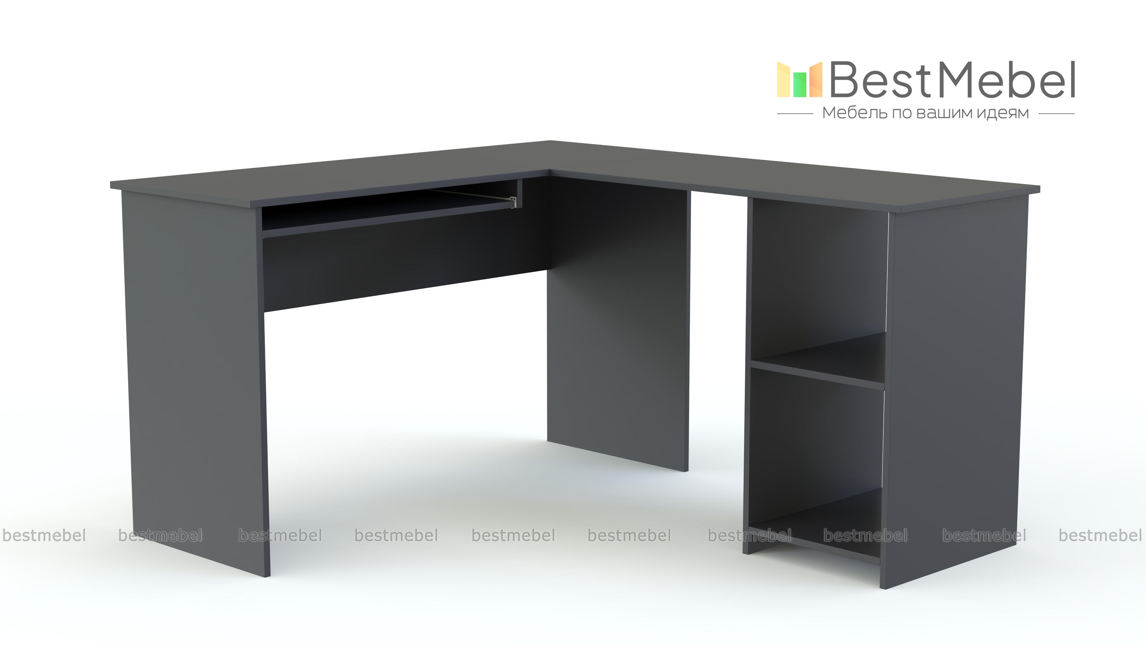 Угловой стол Diego BMS состоит из двух столешниц, расположенных под прямым углом друг к другу. На одной из них удобно работать на компьютере, для клавиатуры предусмотрена выдвижная панель. Другая часть столешницы интегрирована с двумя открытыми полками. Модель может стать удачным решением обустройства офисных помещений небольшой площади, хорошо будет смотреться в молодежной комнате. Возможны многочисленные варианты расцветки мебели. Один из них вы можете выбрать на нашем сайте и заказать с выгодной скидкой стильный стол Diego BMS с бесплатной доставкой.