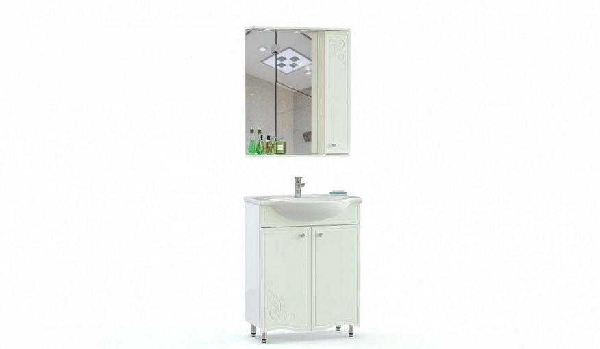 Комплект для ванной Чарлстон 5 BMS сочетает в себе изящный классический дизайн и функциональность. Базовая композиция объединила распашную напольную тумбу под раковину и навесное зеркало с боковым шкафчиком и встроенной в козырек подсветкой. Фигурно вырезанные фасады выполнены из влагостойких материалов в белом цвете с декором, устойчивость тумбе обеспечивают высокие ножки. Купить комплект для ванной Чарлстон 5 BMS приглашаем выгодно в наш интернет-магазин.