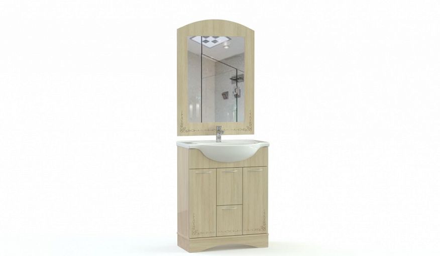 Комплект для ванной комнаты Фрезия 1 BMS по достоинству оценят поклонники классических дизайнов. Эффектная композиция в бежевом цвете с фрезеровкой включает в себя напольную тумбу под раковину и навесное панно с зеркалом и подсветкой. Два выдвижных ящика и два распашных отделения с полками легко решат проблему хранения гигиенических принадлежностей и бытовой химии. Купить комплект для ванной комнаты Фрезия 1 BMS вы сможете на сайте нашего интернет-магазина.