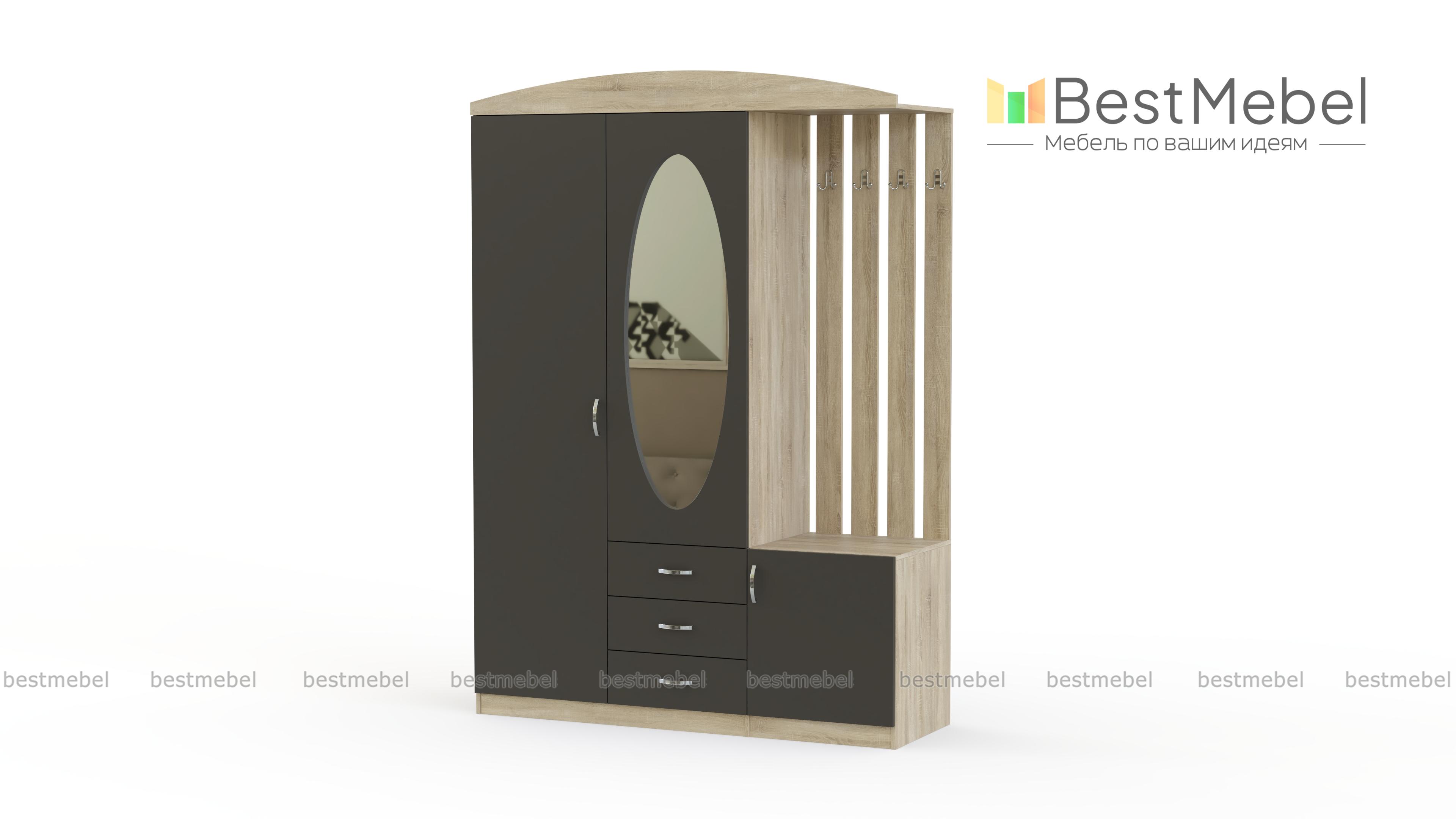 Прихожая Вита-2 BMS подходит для создания интерьеров в стиле классика или модерн. Элегантная композиция с полукруглым верхом объединила отделения с полками и штангой, выдвижные ящики для хранения мелких аксессуаров, открытую вешалку из отдельных планок и распашную обувницу. Большое овальное зеркало в центре фасада, выполненного в темных тонах, эффектно смотрится и делает удобным выбор одежды. Купить прихожую Вита-2 BMS вы сможете в нашем интернет-магазине, по желанию изменив цвет и размеры.