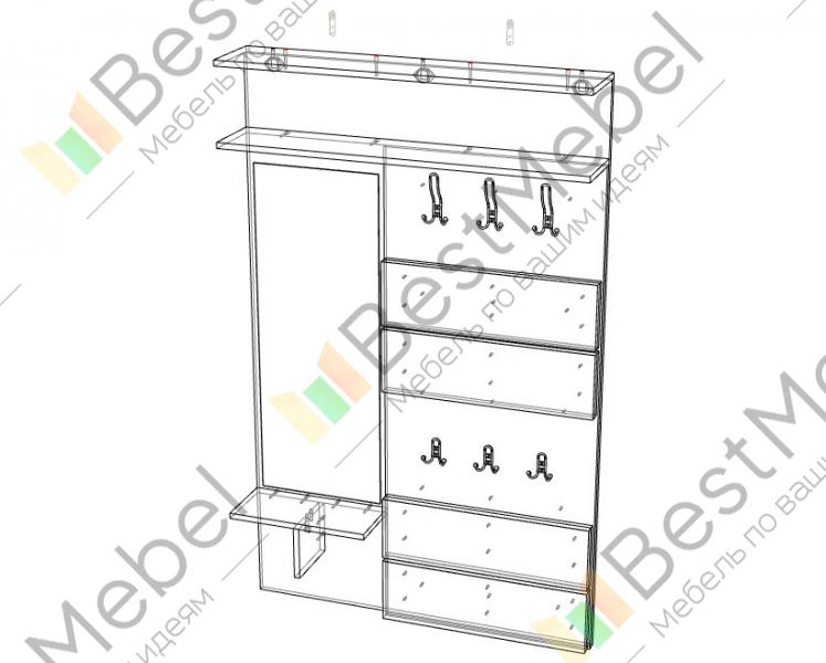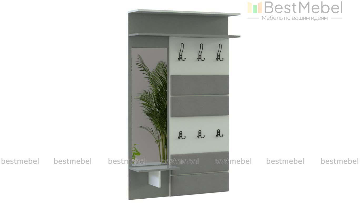 Вешалка Нота 3 BMS эффектно сочетает в оформлении разные цвета и фактуры. Настенные панели, выполненные из качественной ламинированной плиты в древесных тонах, дополнены широкими накладками из экокожи. Для удобного размещения верхней одежды, аксессуаров и комфортного ухода за собой открытая вешалка оборудована расположенными на двух уровнях крючками, двумя верхними полками и зеркалом с полочкой для мелочей. Купить вешалку Нота 3 BMS для меблировки современной прихожей вы сможете в нашем инернет-магазине.