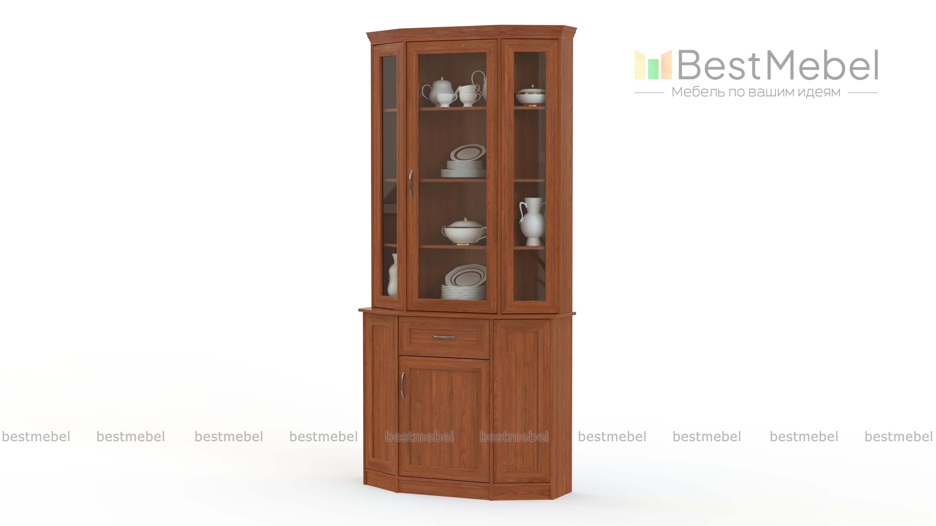 Буфет Ольга 3 BMS смотрится необыкновенно элегантно в насыщенных древесных тонах и гармонично дополнит меблировку столовой или гостиной в классическом стиле. Модель с трехгранным рамочным фасадом украсит интерьер и разместит как бытовые вещи, так и изысканную посуду и предметы декора. В нижней части буфета располагаются глухое распашное отделение и выдвижной ящик, а в верхней – просторная витрина с полками. Купить буфет Ольга 3 BMS приглашаем выгодно в наш интернет-магазин.