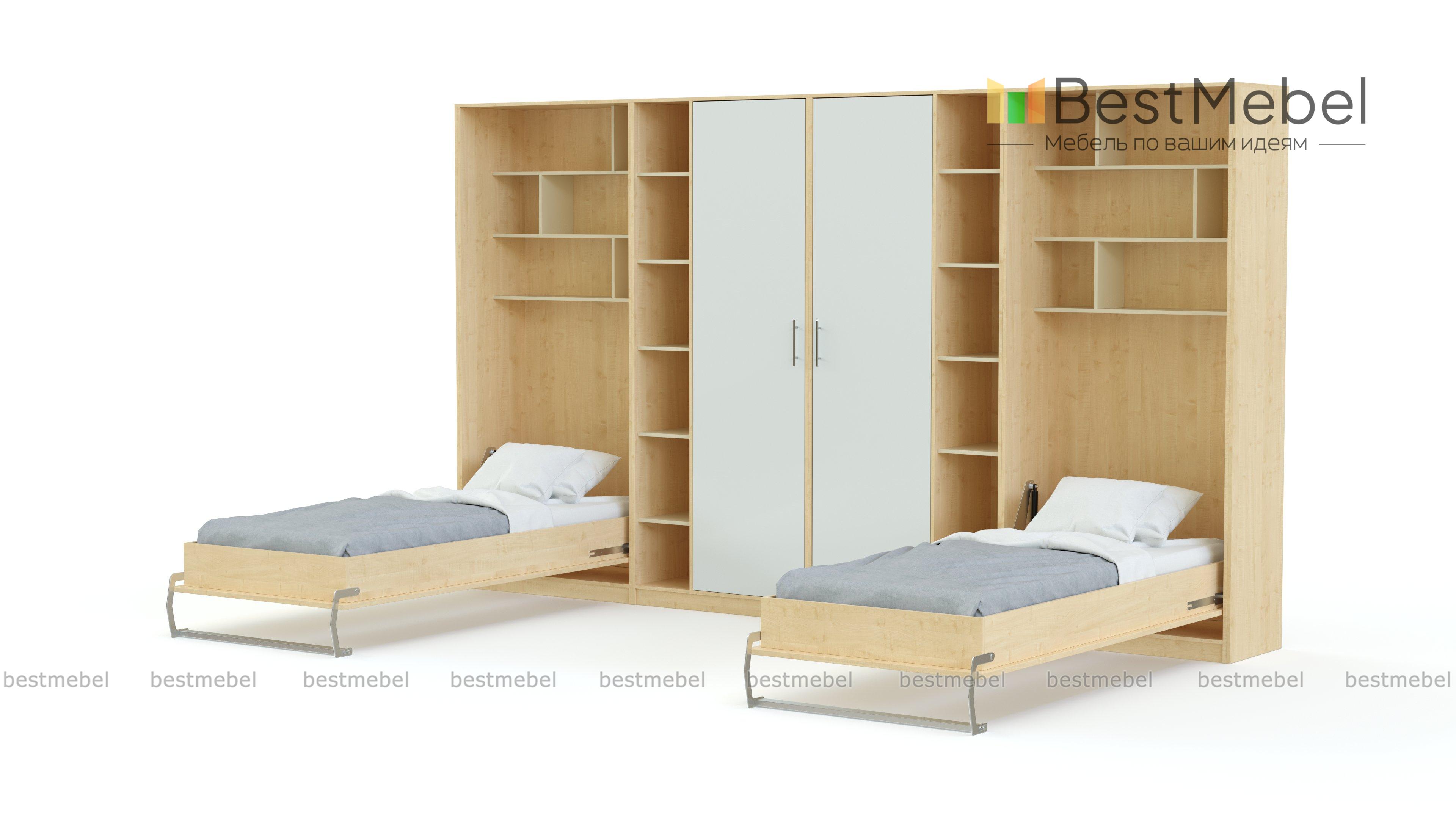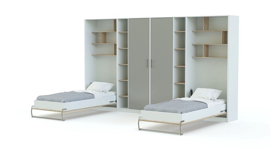 Шкаф-кровать трансформер Фазан 54 BMS – интересное дизайнерское решение для комнаты двоих подростков. Многофункциональный линейный комплекс включает в себя все необходимое для комфортного отдыха, учебы и хранения вещей, а в оформлении фасадов гармонично сочетаются нейтральные и яркие оттенки. Композиция включает в себя распашной платяной шкаф, книжные стеллажи и модули-трансформеры с откидными кроватями, плавающими столешницами и скрытыми в нишах открытыми полками. Купить шкаф-кровать трансформер Фазан 54 BMS и рационально организовать пространство вам поможет наш интернет-магазин.
