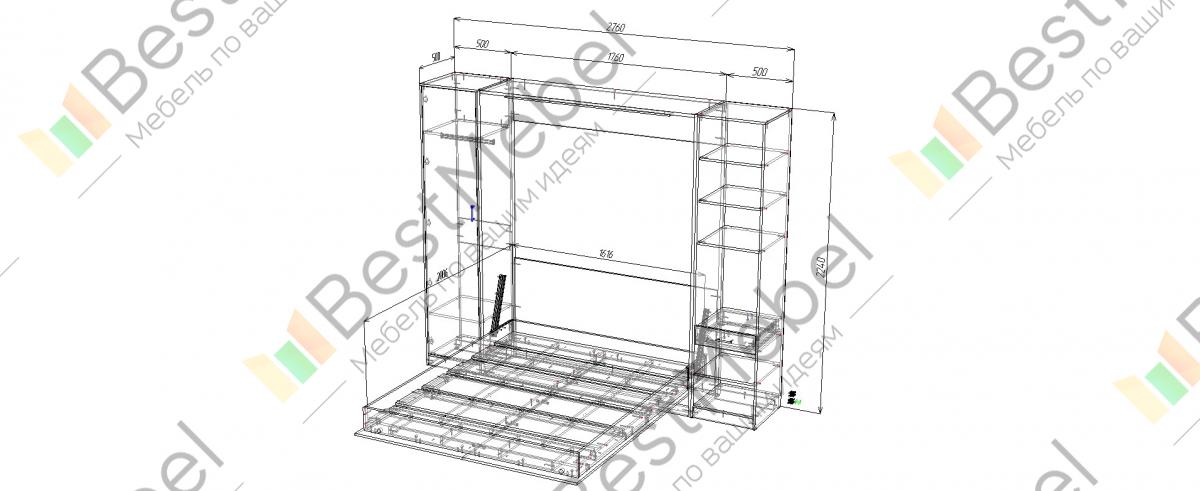 Мы не рекомендуем покупать пружинные матрасы к шкафу-кровати. Стоит отдавать предпочтение беспружинным изделиям. Это связано с тем, что поведение пружин в вертикальном положении матраса невозможно предсказать. Матрас быстро подвергается деформации и смещению слоев. Идеальным вариантом для откидной модели будет лёгкий беспружинный матрас, основу которого составляют современные материалы, не имеющие в составе пружины.