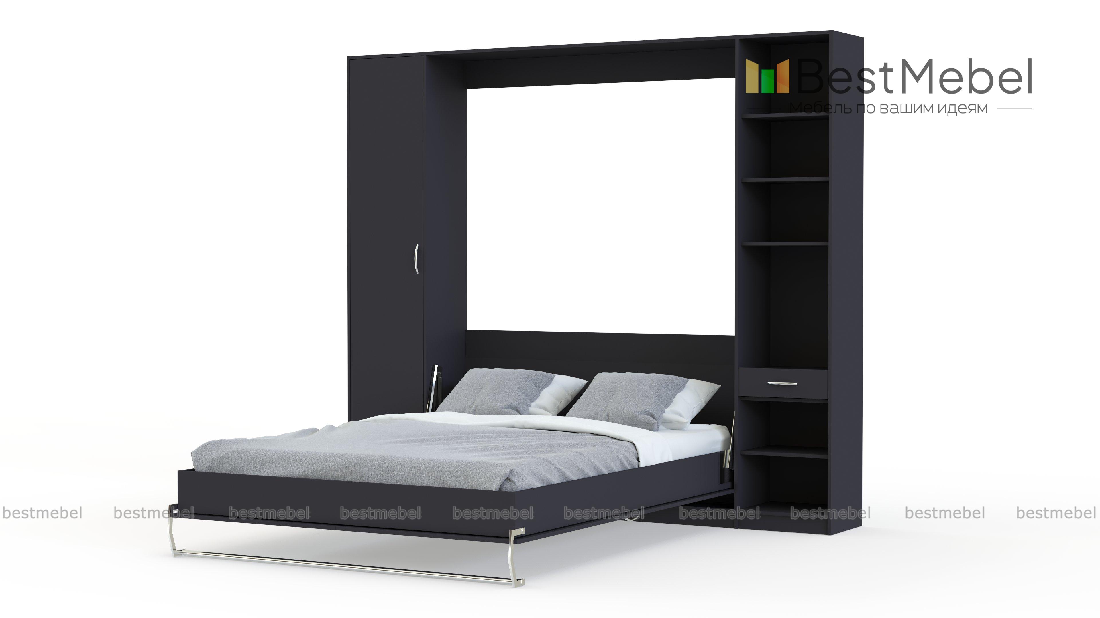 Шкаф-кровать трансформер Мечта 2 BMS легко воплотит в жизнь мечту об элегантном и в то же время функциональном интерьере. Эффектная композиция в духе современной классики гармонично сочетает эстетичный дизайн и практичность конструкции. Компактная стенка оборудована симметрично расположенными пеналом и книжным стеллажом, а в центре за имитацией дверей скрыта откидная двуспальная кровать. Купить шкаф-кровать трансформер Мечта 2 BMS для небольшой гостиной, спальни или студии приглашаем в наш интернет-магазин.