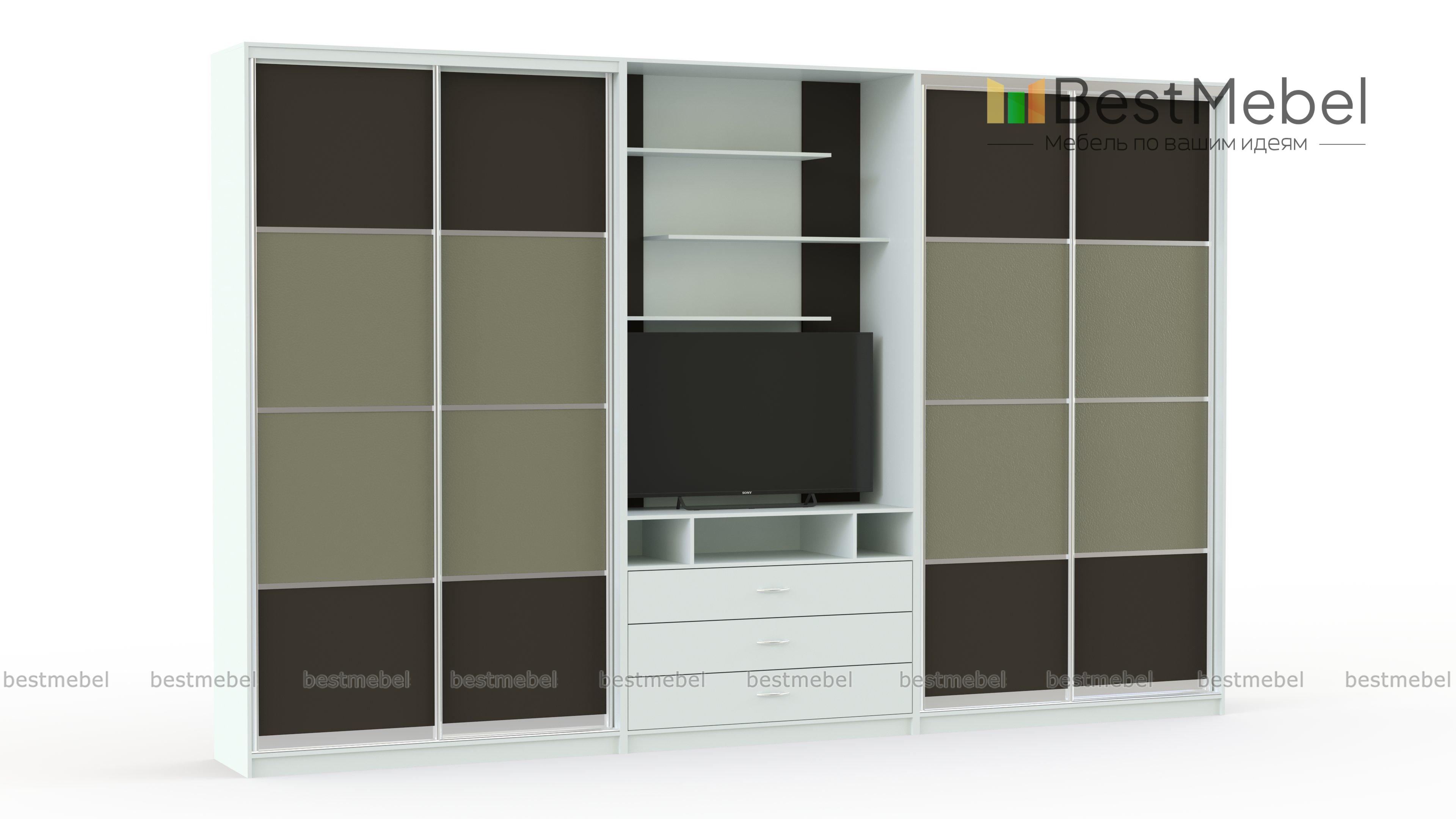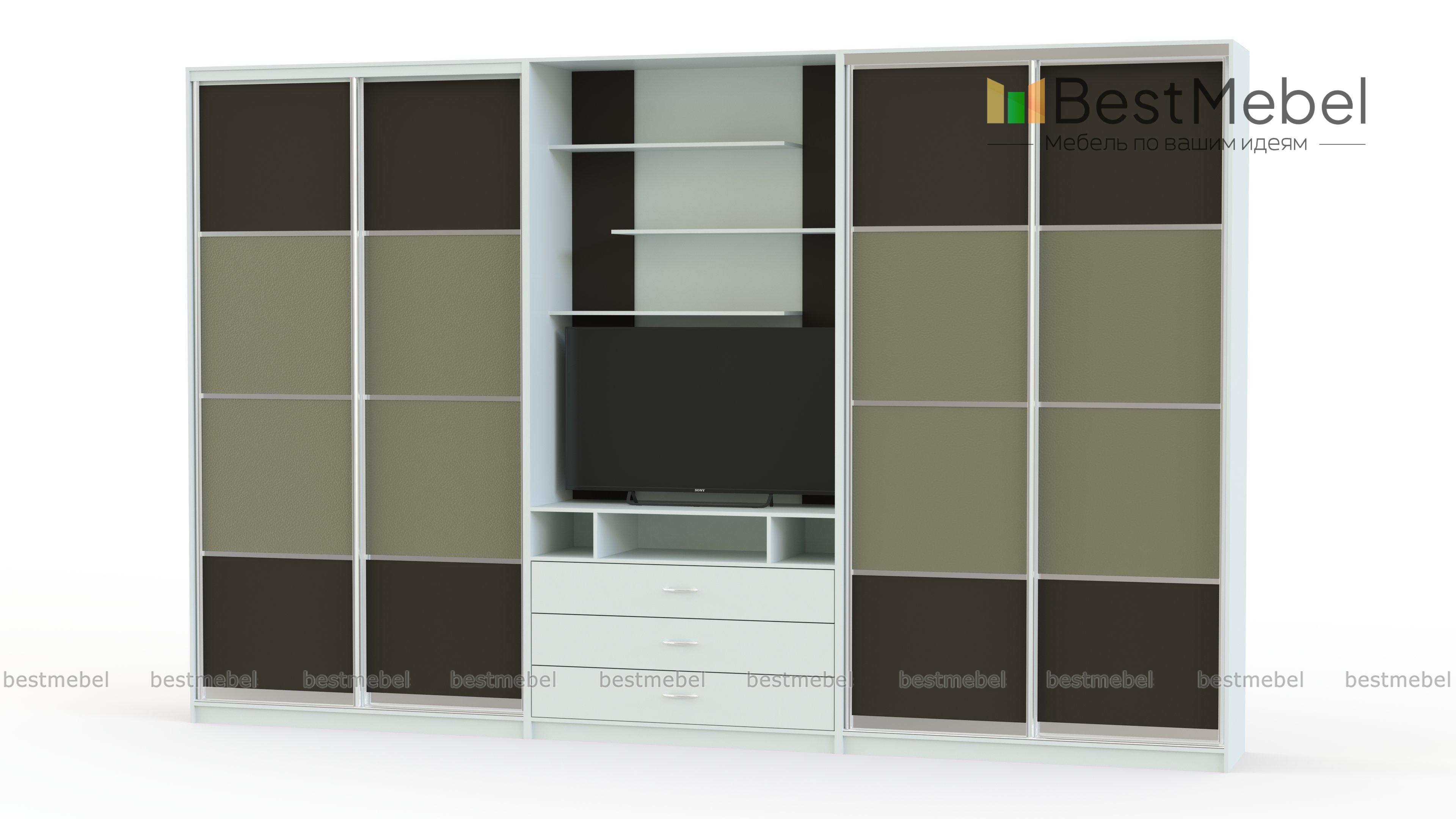 Двойной шкаф-купе Даная 38 BMS отличается элегантным современным дизайном и функциональностью. Комбинированная модель позволит вам разгрузить от лишней мебели другие помещения дома и создать комфортный и эстетичный интерьер. Композиция объединила два двухдверных шкафа-купе и секцию с тумбой под ТВ и открытыми полками для книг и декоративных мелочей. Выполненный в контрастных тонах, шкаф украшен по фасаду вставками в экокоже. Купить двойной шкаф-купе Даная 38 BMS приглашаем в наш интернет-магазин.