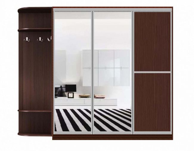 Шкаф-купе Айва 23 BMS выполнен в насыщенных древесных тонах, а зеркальные дверцы помогают сэкономить на лишней мебели и придают небольшому помещению дополнительную глубину и объем. Вместительный, но при этом компактный за счет раздвижной конструкции, трехдверный шкаф удобен для хранения большого количества вещей. Отделение-купе дополнено открытой торцевой вешалкой со скругленными полками. Купить Шкаф-купе Айва 23 BMS по доступной цене приглашаем в наш интернет-магазин.