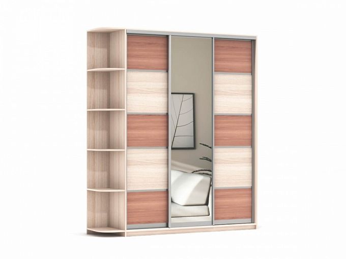 Шкаф-купе Экспрессо-11 BMS порадует владельцев вместительностью и сдержанной элегантностью дизайна. Современная модель выполнена в нейтральных древесных тонах и декорирована зеркалом в полный рост и горизонтальным профилем. За тремя раздвижными дверцами находится все необходимое для аккуратного размещения одежды на плечиках, постельного белья и аксессуаров – платяное отделение и просторные полки. Для мелочей и интерьерных украшений предусмотрен торцевой стеллаж. Купить шкаф-купе Экспрессо-11 BMS по лучшей цене приглашаем в наш интернет-магазин.