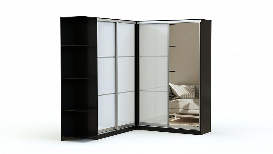 Шкаф-купе Г-образный Полли BMS – удобная система хранения для интерьера современной спальни, гостиной или просторной прихожей. Крупногабаритный угловой шкаф отличается особенной вместительностью и экономит пространство за счет раздвижной конструкции дверей. Вы сможете компактно разместить одежду на плечиках, постельное белье и сезонные вещи благодаря отделениям со штангами, полкам и выдвижным ящикам, а для мелочей и декоративных предметов предусмотрен торцевой стеллаж. Элегантные фасады с отделкой профилем дополняет зеркало. Купить шкаф-купе Г-образный Полли BMS приглашаем в наш интернет-магазин.