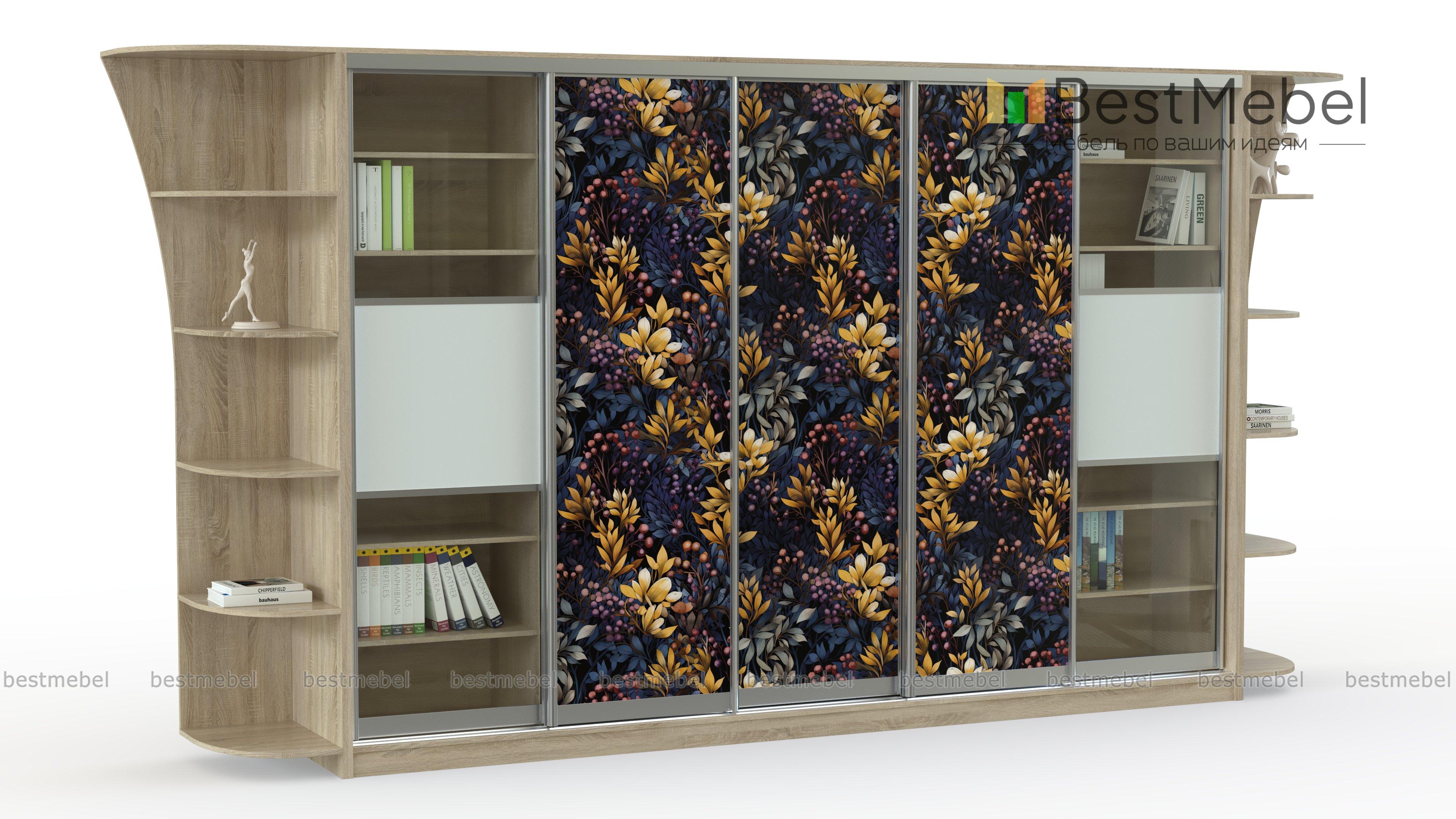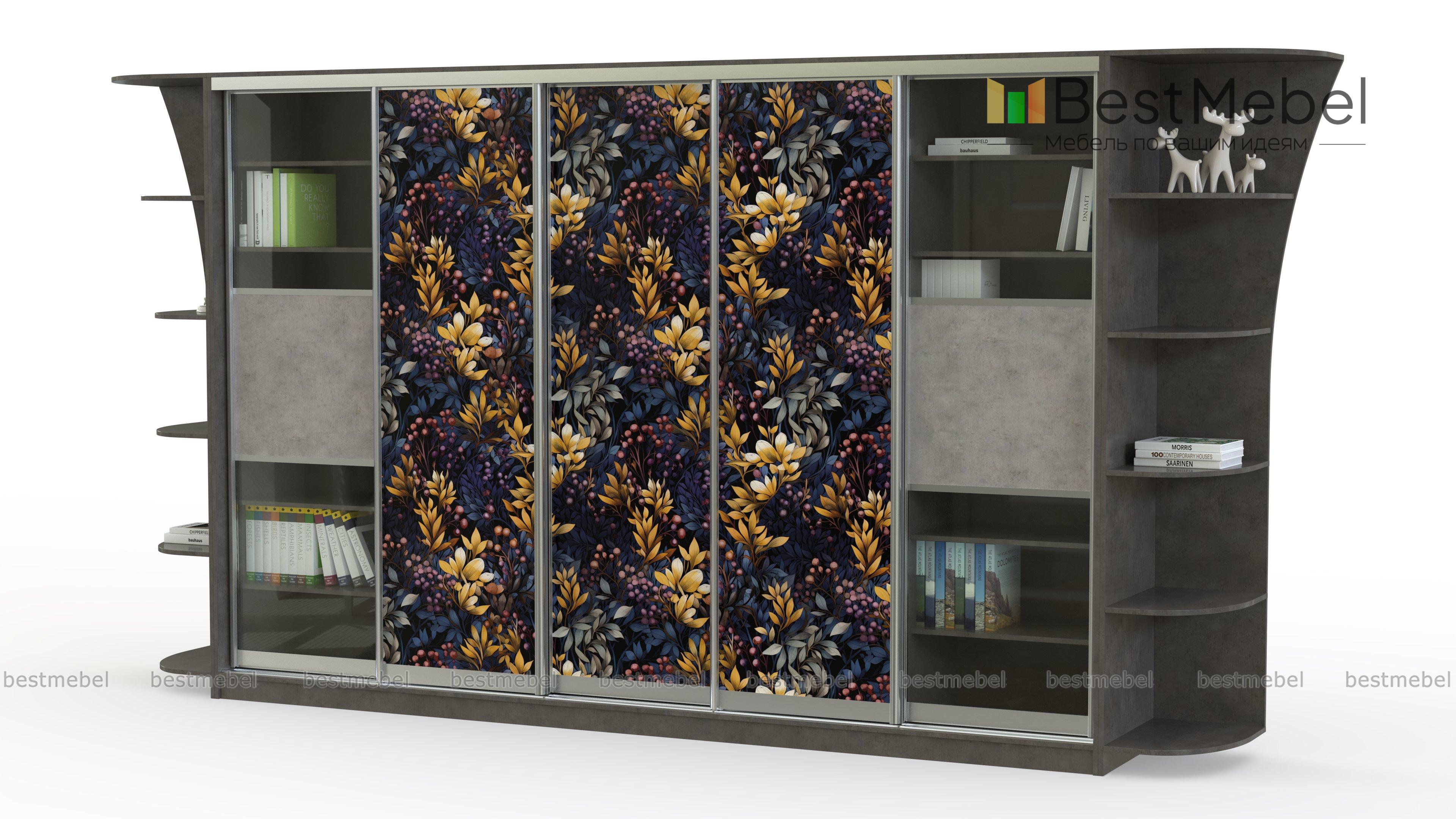 Шкаф-купе Каролина 13 BMS декорирован по фасаду эффектной цветочной фотопечатью и будет задавать тон всему интерьеру. Пятидверная модель, дополненная торцевыми фигурными стеллажами, гармонично вписывается в просторные гостиные и помогает разместить книги, одежду, бытовые вещи и множество мелочей. Раздвижные дверцы экономно используют пространство и комфортны в эксплуатации благодаря качественным направляющим. Купить шкаф-купе Каролина 13 BMS по выгодной цене вы сможете в нашем интернет-магазине.
