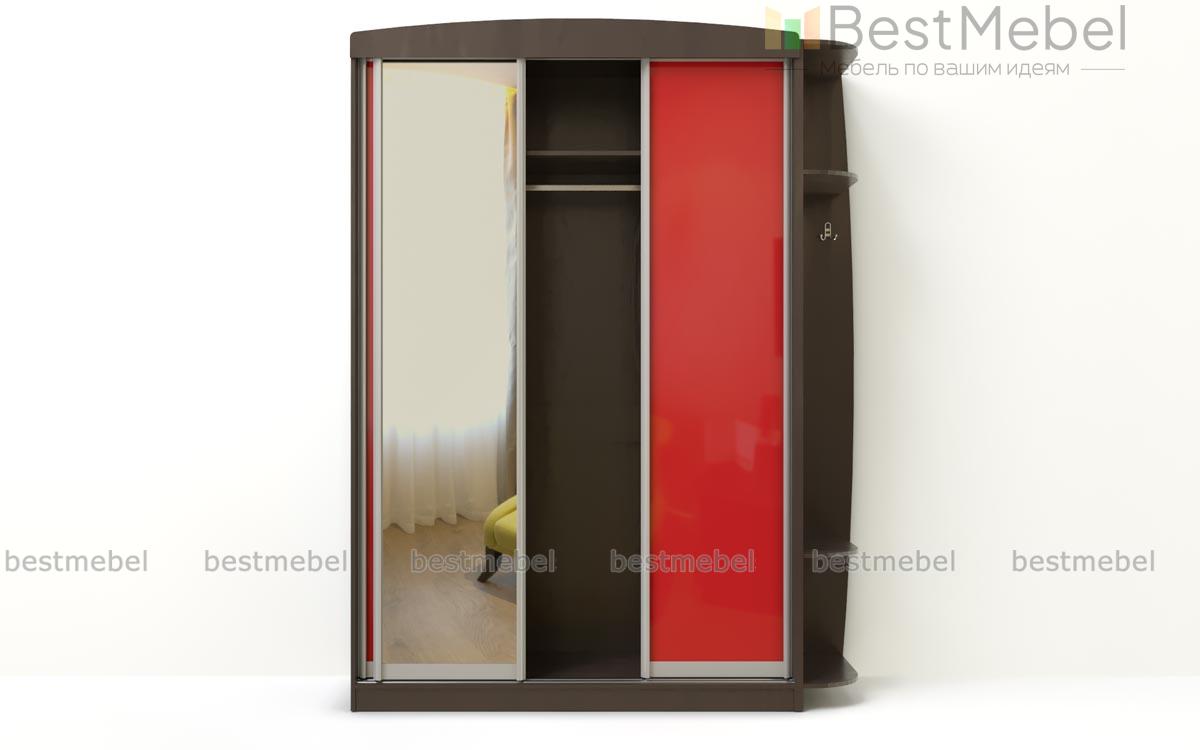 Шкаф-купе Куб 1.1 BMS придется по душе поклонникам ярких современных интерьеров. Комбинированная модель оборудована раздвижным отделением со штангой и полками и дополнена оригинально скругленной торцевой секцией, удобной для размещения аксессуаров и декоративных предметов. Фасады выполнены в модном сочетании цветных стеклянных поверхностей и зеркала в полный рост. Купить шкаф-купе Куб 1.1 BMS и дополнить меблировку прихожей или небольшой студии практичным и стильным предметом вам поможет наш интернет-магазин.