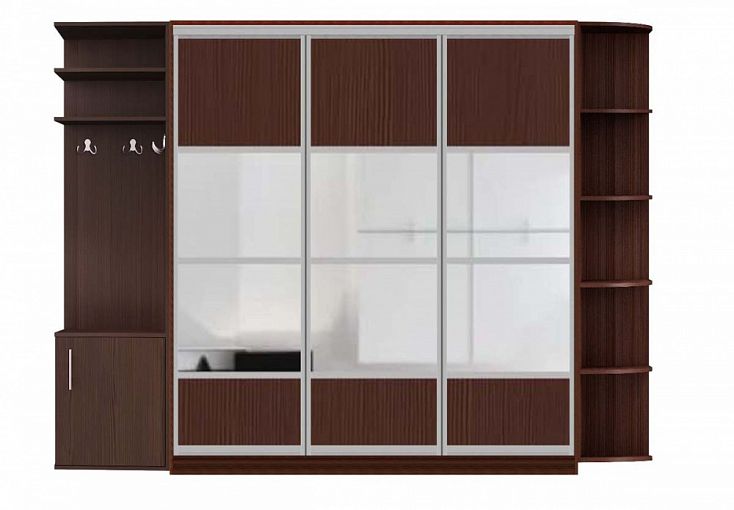 Шкаф-купе Мальва 29 BMS отличается лаконичным современным дизайном и функциональностью. Строгие линии модели подчеркивает исполнение в древесных тонах с геометричными зеркальными вставками и профилем оттенка серебро. Трехдверный шкаф разместит одежду и обувь, а практичными дополнениями станут радиусный стеллаж и секция с открытой вешалкой, распашной тумбой и полками под головные уборы. Купить Шкаф-купе Мальва 29 BMS для меблировки комфортной входной зоны приглашаем в наш интернет-магазин.