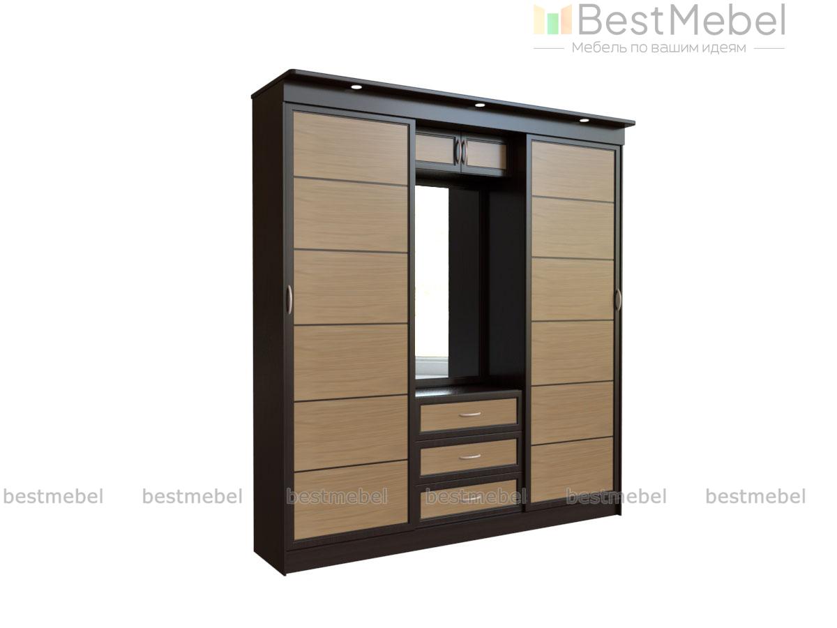 Шкаф-купе Миллениум Лайн 7Х BMS станет практичным решением для интерьера спален и прихожих. Комбинированная модель объединила два отделения-купе и центральную секцию с тремя выдвижными ящиками, нишей с зеркалом и распашной антресолью. Выполненный в древесных тонах, шкаф смотрится солидно, но вместе с тем актуально и порадует владельцев отличной вместительностью. Купить шкаф-купе Миллениум Лайн 7Х BMS и организовать удобное хранение разнообразных предметов гардероба и бытовых мелочей вам поможет наш интернет-магазин.