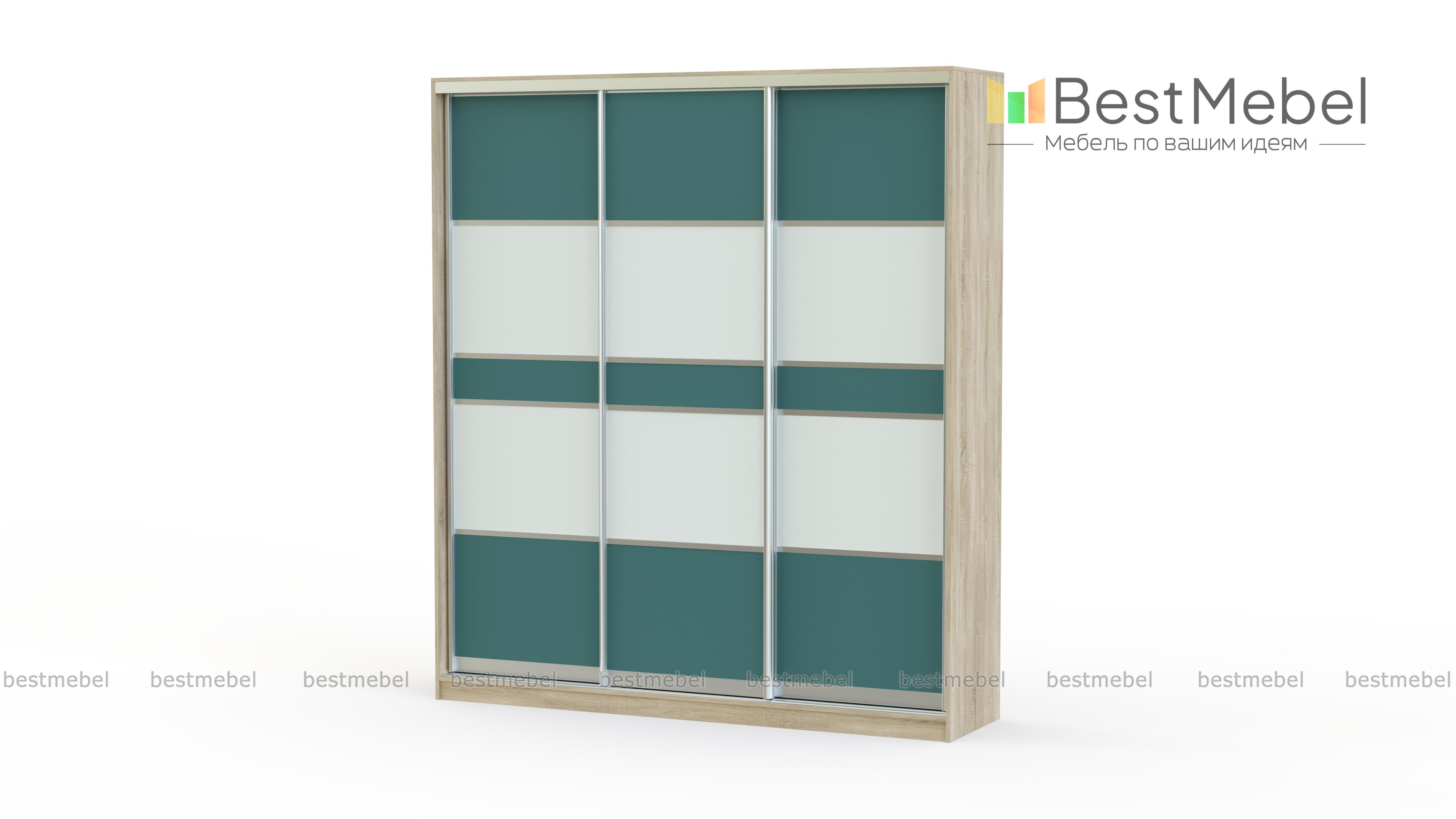 Презентабельный трехдверный шкаф-купе Премиум 220В BMS изготавливается из ДСП одного из представленных в каталоге цветов на выбор. Внутри шкаф комплектуется просторными полками, хромированной штангой для вешалок, дополнительно возможно измененить наполнение на Ваш вкус. Дизайн фасада позволяет комбинировать несколько материалов для оформления.