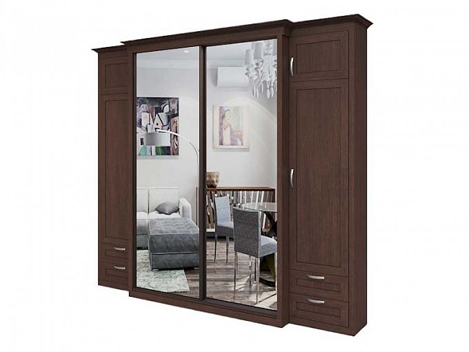 Шкаф-купе Вердженс BMS выполнен из экологичных материалов высокого качества и отличается крупными габаритами, массивностью и элегантным классическим декором. Модель на редкость вместительна за счет комбинированной конструкции и представляет собой сочетание центрального раздвижного отделения с зеркальными фасадами и симметрично расположенных распашных пеналов с выдвижными ящиками в основании. Шкаф в традиционных древесных тонах украшен карнизом и фрезерованными фасадами. Купить шкаф-купе Вердженс BMS для меблировки спальни приглашаем в наш интернет-магазин.