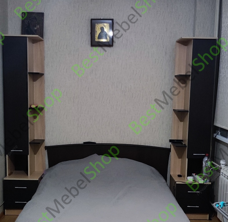 Заказывали набор мебели для спальни из разных элементов. Размеры изменяли по ширине, глубине и высоте для себя. Место мало, но благодаря возможности изменения размеров и выборе цветов, получилось лучше чем думали. На 9 квадратах разместили шкаф-купе шириной 2,7 м, высотой 2,5 м, два пенала разной ширины высотой 2,4 м, и кровать, как парящая над полом. К новому году буду в другой квартире заказывать тут мебель.