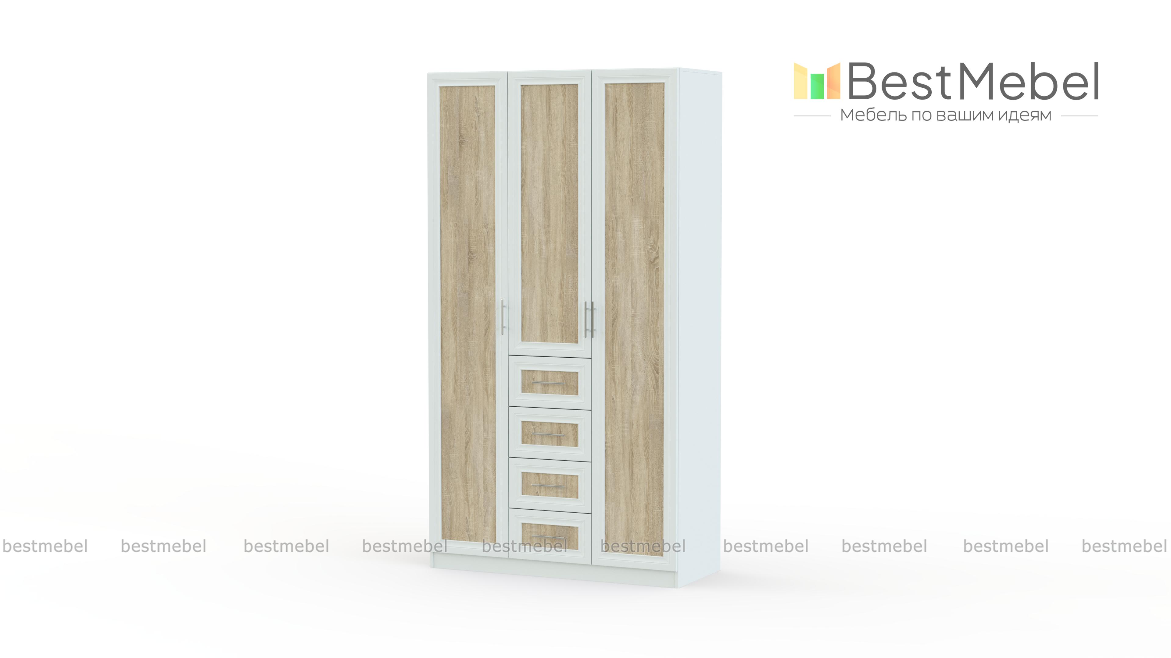 Распашной шкаф Крона 14 BMS – это гармоничные пропорции, надежность и элегантный дизайн, объединивший классические и современные черты. Вместительная модель порадует владельцев наличием отделений разного типа, что позволит максимально аккуратно разместить предметы гардероба. Незаменимый в интерьере спальни, шкаф оборудован платяным отделением со штангой, бельевыми полками и четырьмя выдвижными ящиками для мелочей. Купить распашной шкаф Крона 14 BMS вы сможете в нашем интернет-магазине, подобрав оптимальные параметры.