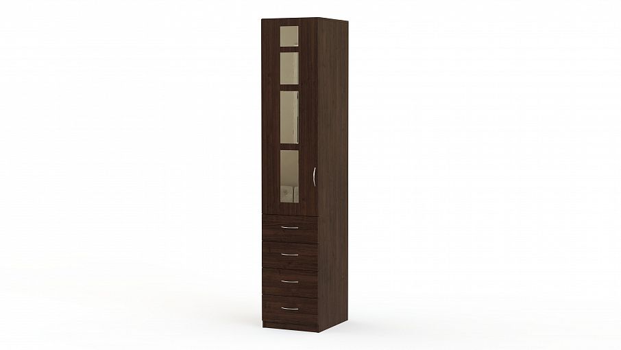 Распашной шкаф Паулина 22.1 BMS с геометричным зеркальным декором на фасаде отличается элегантным современным дизайном. Компактная по ширине модель станет практичным выбором для меблировки малогабаритных помещений, позволяя сэкономить пространство. Однодверный шкаф оборудован распашным отделением с полками и четырьмя выдвижными ящиками в нижней части. Купить распашной шкаф Паулина 22.1 BMS приглашаем к нам в интернет-магазин, подобрав оптимальное цветовое решение.