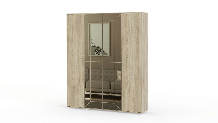 Шкаф 4-х дверный Амели BMS станет стильным акцентом в интерьере благодаря оригинальной композиции из отдельных зеркал в центральной части. Вместительная модель лаконична по форме и выполнена в актуальной цветовой гамме – бежевые тона под массив дерева. Продуманная система хранения из вместительных полок и трех отделений со штангами позволит максимально удобно разместить одежду, обувь и аксессуары. Купить шкаф 4-х дверный Амели BMS по доступной цене вы сможете в нашем интернет-магазине.