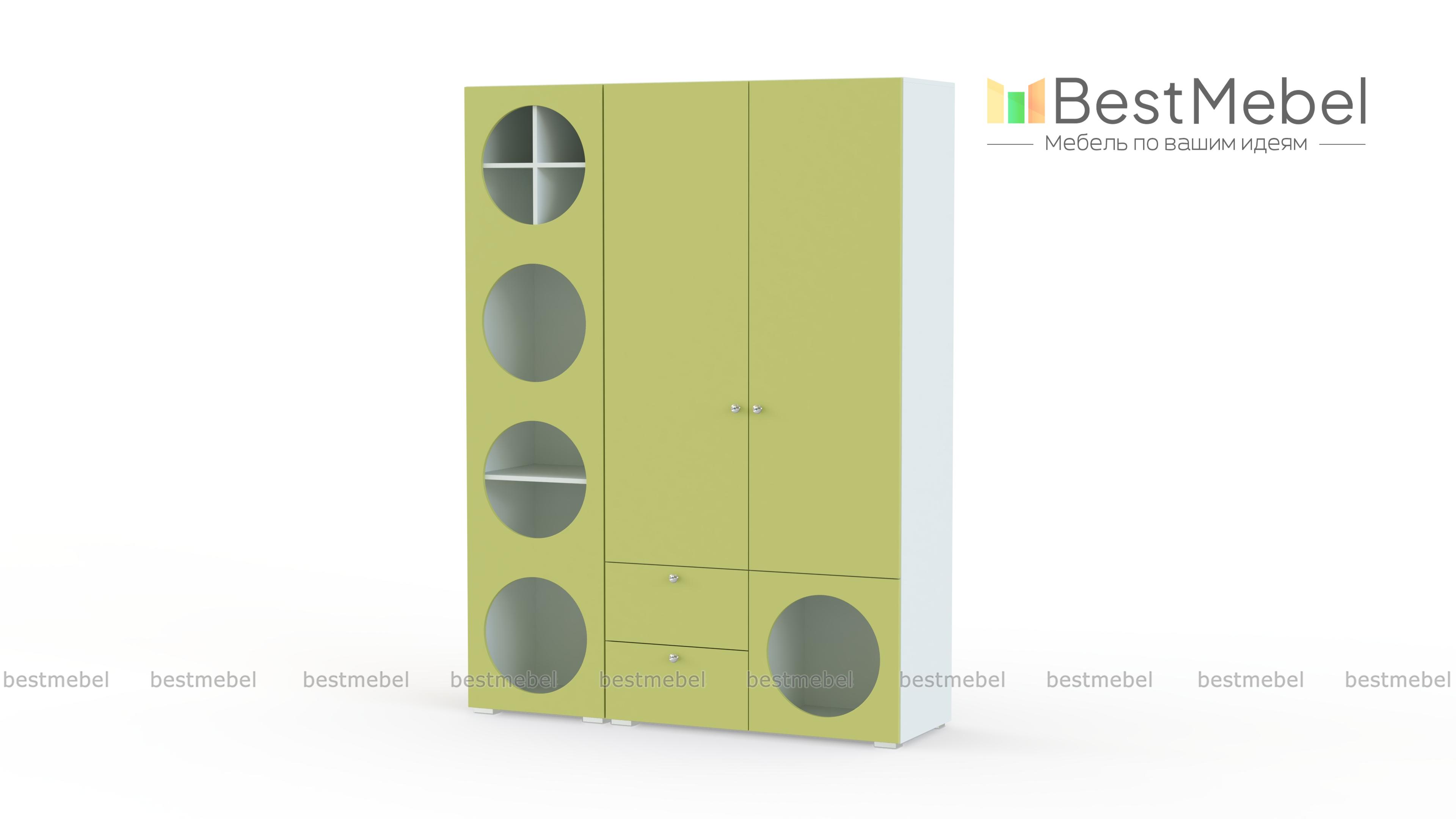 Шкаф распашной Авелин 3 BMS позволит легко убрать внутрь одежду, учебники, игрушки и коробки с мелочами. Особенность конструкции шкафа — наличие не только стандартного платяного отделения и ящиков для белья, но и открытых круглых секций с перегородками. Светлые лаконичные фасады будут гармонично сочетаться практически с любым оформлением комнаты. Купить шкаф распашной Авелин 3 BMS с возможностью выбора цвета, размеров и компоновки приглашаем в наш интернет-магазин.