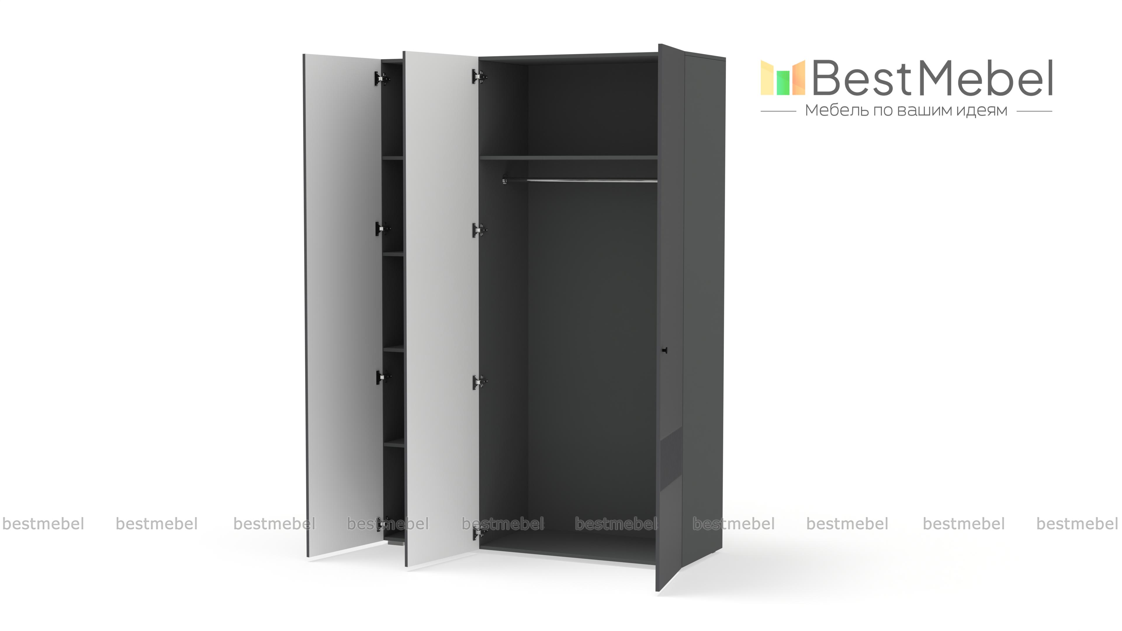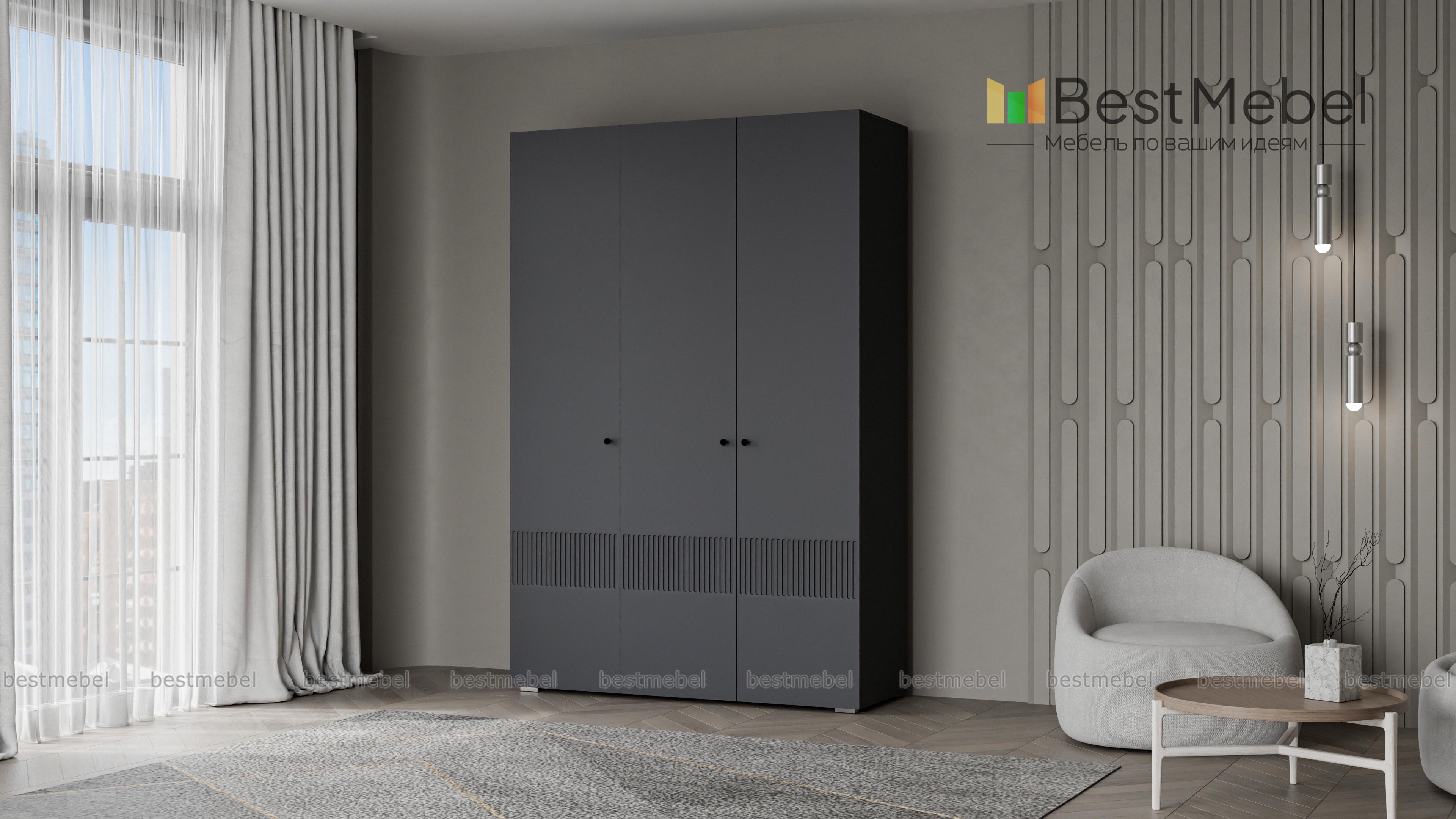 Шкаф распашной Джосс 3 BMS — компактный и стильный в двух актуальных оттенках. В отделке сплошного фасада, выполненного из устойчивой к повреждениям МДФ, использован оригинальный рельеф, дверцы легко открываются с помощью маленьких круглых ручек. Для разных вариантов хранения в трехдверной модели предусмотрены как штанга, так и секция с полками. Купить шкаф распашной Джосс 3 BMS с выбором размеров, цвета и фурнитуры вы сможете в нашем интернет-магазине.