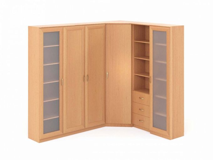 Шкаф угловой Миф BMS - красивый и удобный комплект для гостиной. Включает 5 модулей различного назначения. Два шкафа с матовым стеклом прекрасно подойдут для посуды, книг или декоративных предметов. Для одежды предусмотрен удобный угловой шкаф с полками и большой двустворчатый платяной шкаф со штангой. Кроме того в комплекте есть шкаф с открытыми полками и 3-мя выдвижными ящиками, куда можно сложить различные мелочи. Приобретая нашу мебель, Вы можете скорректировать размеры и подобрать подходящее цветовое решение. Купить шкаф угловой Миф BMS можно на нашем официальном сайте по минимальной цене и в кратчайшие сроки.