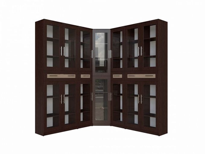 Угловая библиотека Эгисф 23.1 BMS – отличный выбор для меблировки просторного помещения. Вы сможете выгодно использовать обычно незадействованную зону и компактно разместить обширную библиотеку. Модель с классическими рамочными фасадами древесных тонов оборудована распашными застекленными отделениями с полками и дополнена выдвижными ящиками для бумаг, канцелярских принадлежностей и разнообразных мелочей в центральной части. Купить угловую библиотеку Эгисф 23.1 BMS, которая станет практичным элементом и украшением интерьера гостиной или рабочего кабинета, приглашаем в наш интернет-магазин.