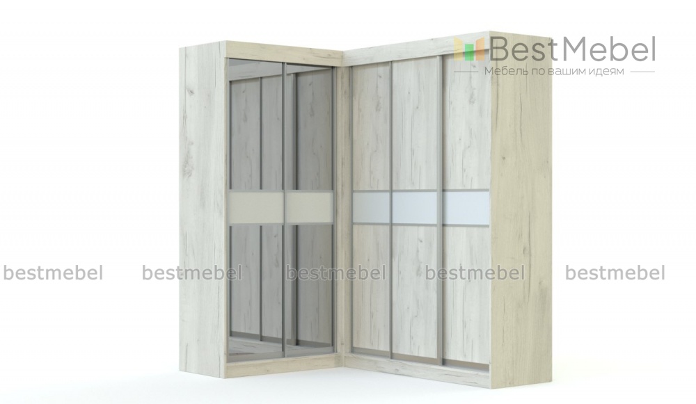 Угловой шкаф СП-4506 BMS вместителен, но при этом компактен за счет практичной конструкции и позволяет выгодно использовать особенности планировки. Композиция объединила трех- и двухдверный шкафы-купе с просторными внутренними отделениями для хранения одежды и домашнего текстиля. В оформлении модели сочетаются поверхности светлых оттенков с имитацией фактуры дерева, белые вставки и зеркала, создавая интересный оптический эффект. Купить угловой шкаф СП-4506 BMS с учетом нужных размеров вы сможете в нашем интернет-магазине.