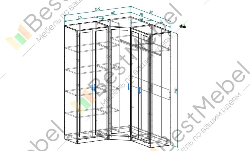 Заказал такой угловой шкаф для разных комнат, изменил цвета и шкафы идеально вписались в интерьеры. Спасибо!