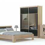 Этот простой и стильный спальный комплект из пяти предметов непременно оценят поклонники минимализма и функциональности. Спальня MILO 05 BMS состоит из широкой двуспальной кровати с прикроватными тумбами, оригинального вместительного шкафа – купе с зеркалом и комода с распашными и выдвижными ящиками. Все предметы выполнены из материалов высокого качества в контрастной гамме модного оттенка дуба и черного и придадут вашей комнате законченный и современный вид.