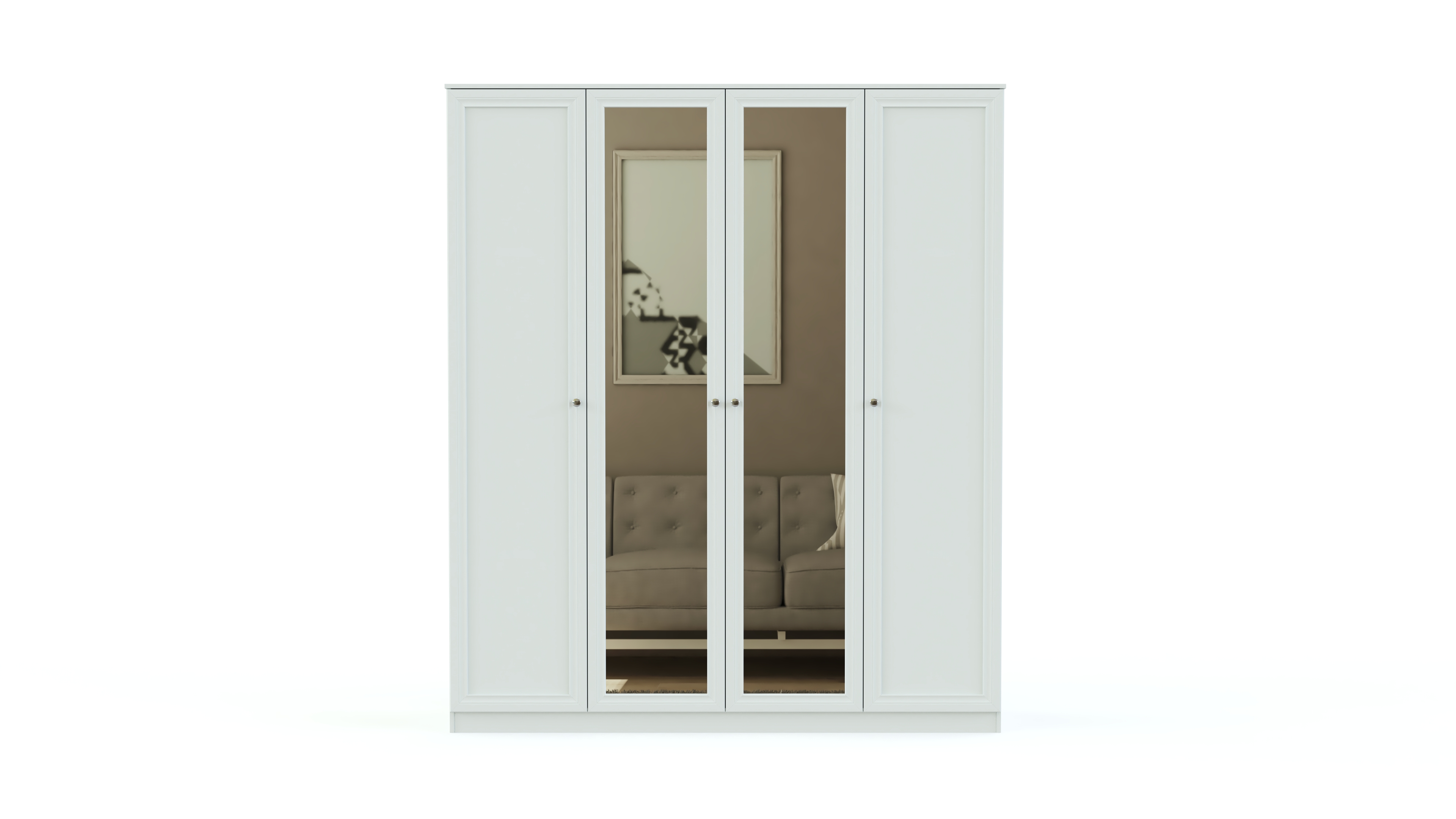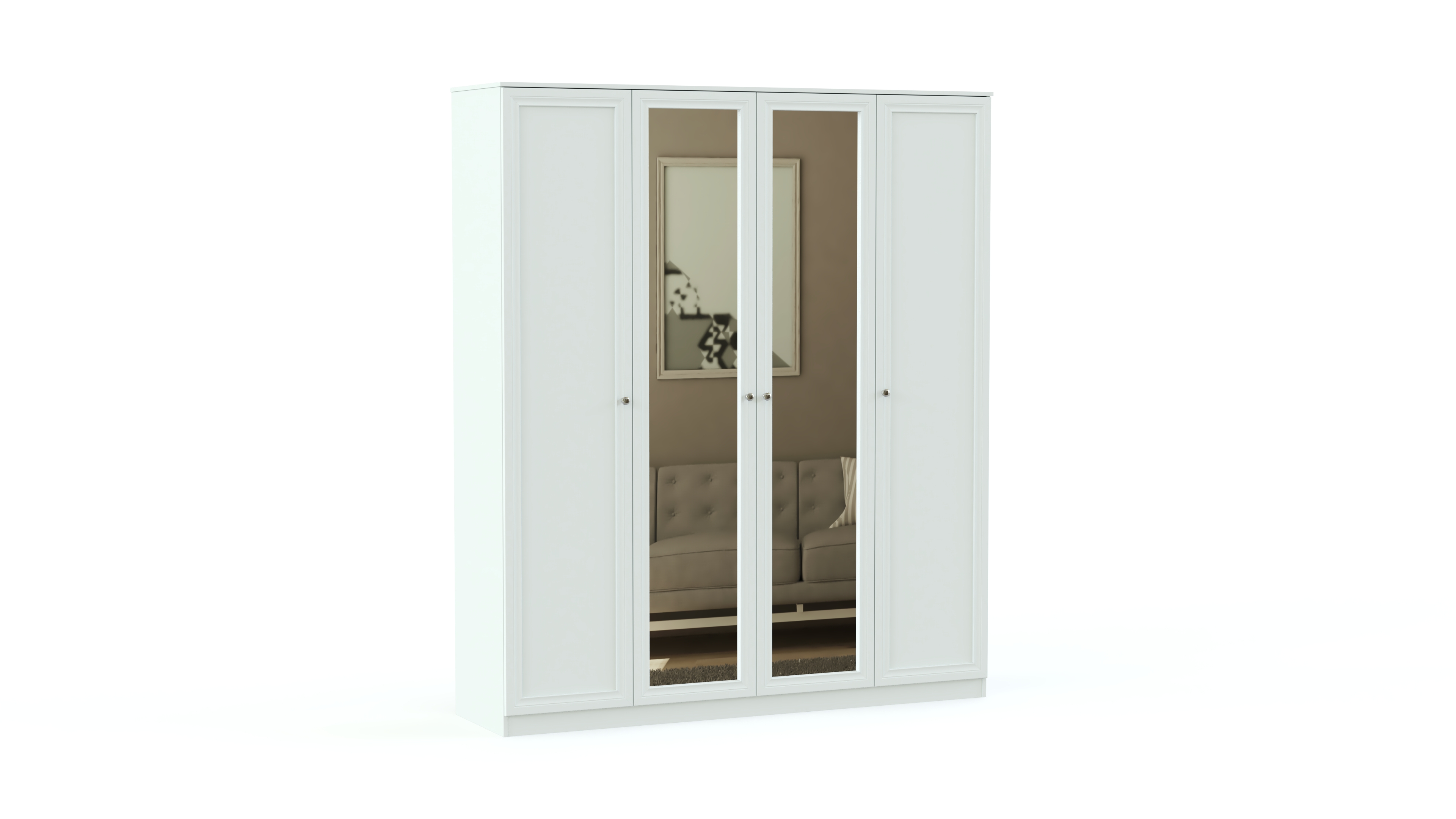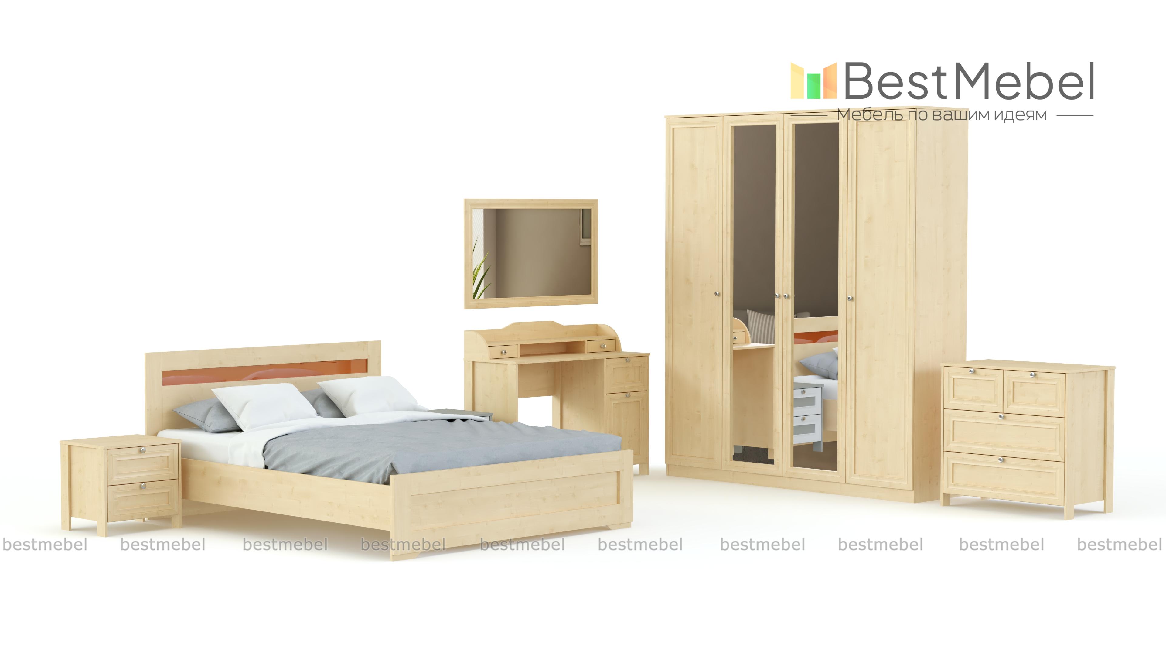 Элегантный классический комплект не выйдет из моды и прослужит вам долгие годы. Спальня Соната BMS состоит из нескольких модулей, которые удобно компоновать по своему вкусу. Это вместительный четырехдверный шкаф с зеркалами в полный рост, комод для белья и мелочей, туалетный столик с навесным зеркалом, кровать и прикроватные тумбы. Мебель выполнена в модных натуральных белых оттенках, а особенное изящество и легкость гарнитуру придают высокие ножки и металлическая фурнитура.